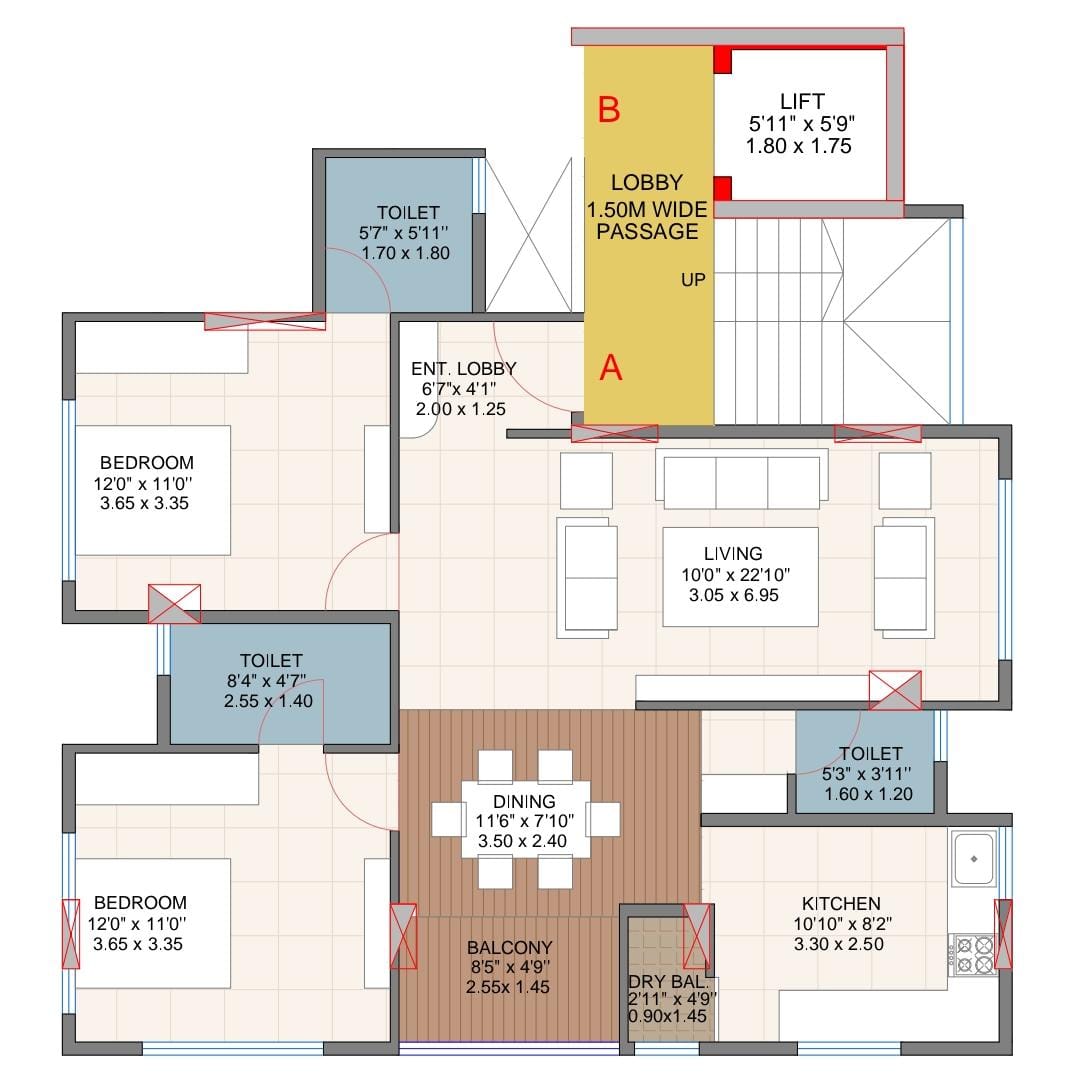 • 1150 Sq.Ft. Built-up Area