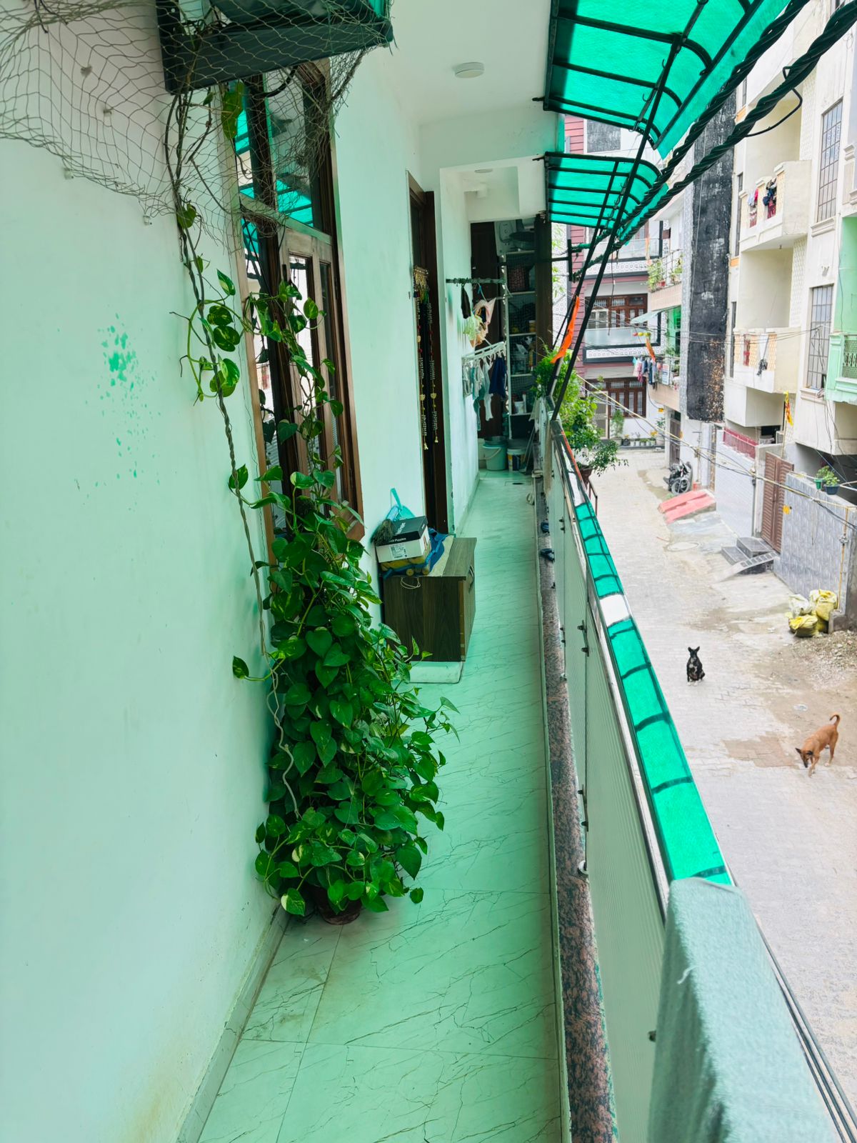 • The 850 square feet builder floor is semi-furnished and features 2 bedrooms and 2 bathrooms, with a road view and one