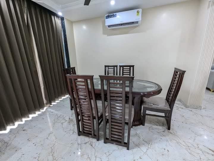 This three-bedroom, three-bathroom furnished Flats in Saket, Delhi, offers a spacious 1700 square feet of living space with a road view, perfect for families or bachelors seeking a well-equipped home.