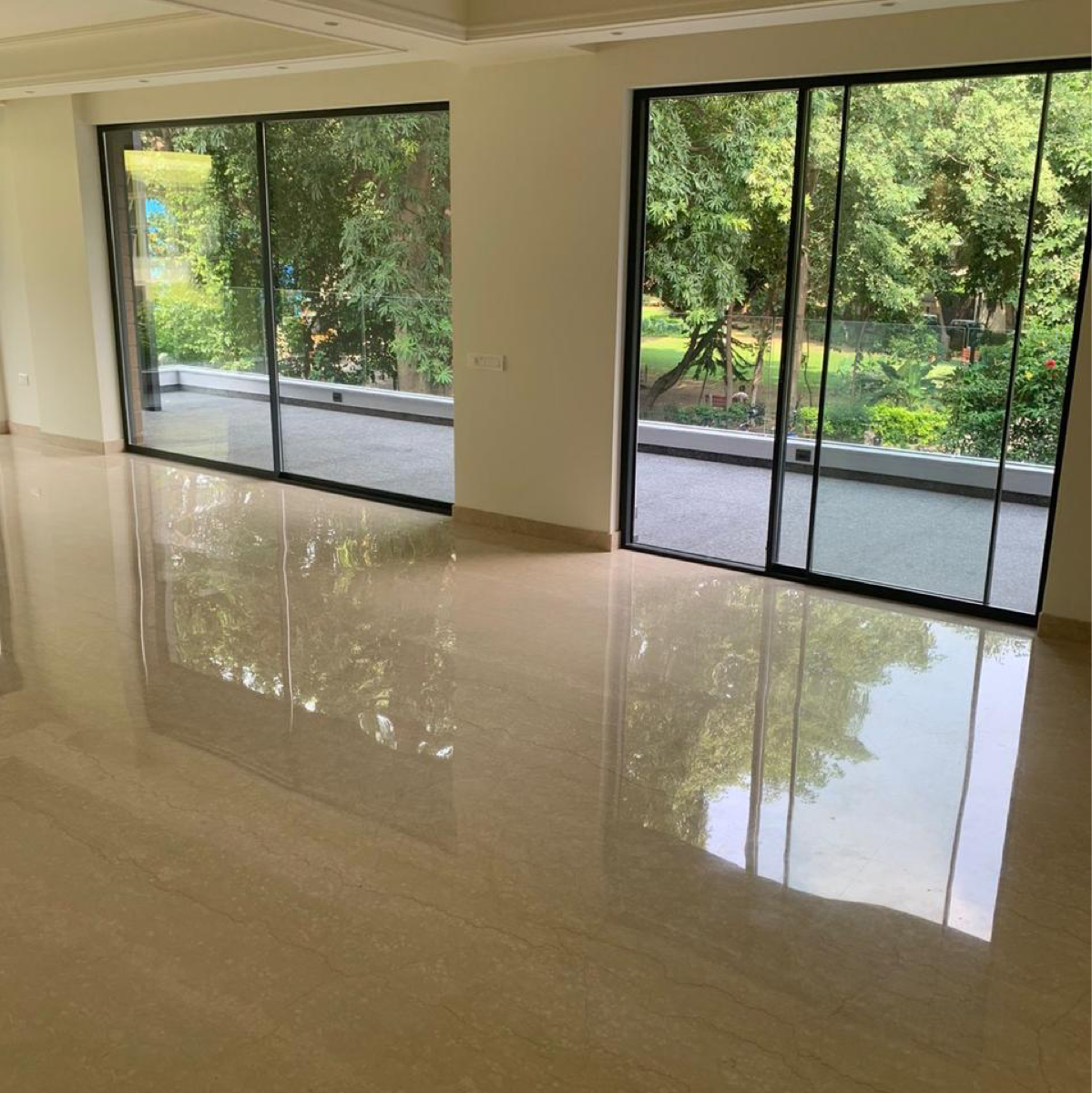 • This furnished, four-bedroom builder floor, less than a year old, boasts a serene garden view