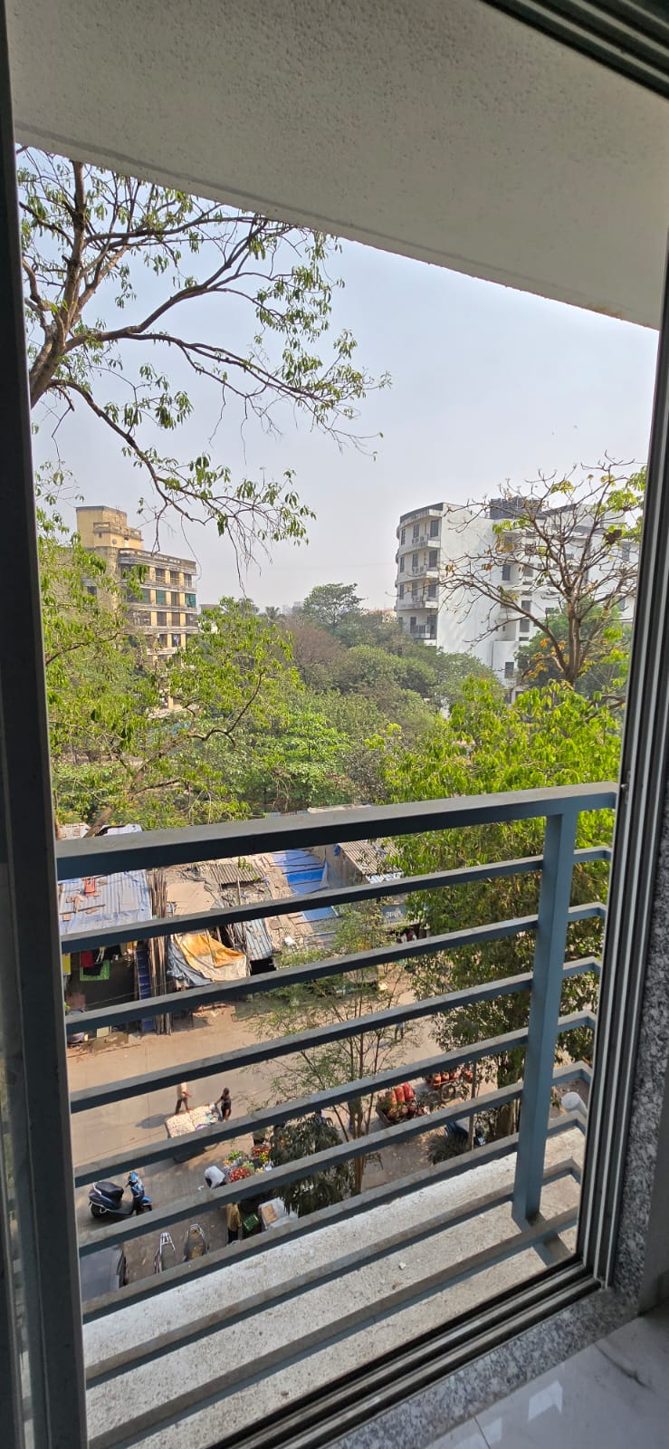 A peaceful road view awaits from the 5th floor of Dhruvatara CHS in Ghatkopar East, Mumbai, a well-maintained gated society perfect for families looking for an affordable and safe living space.