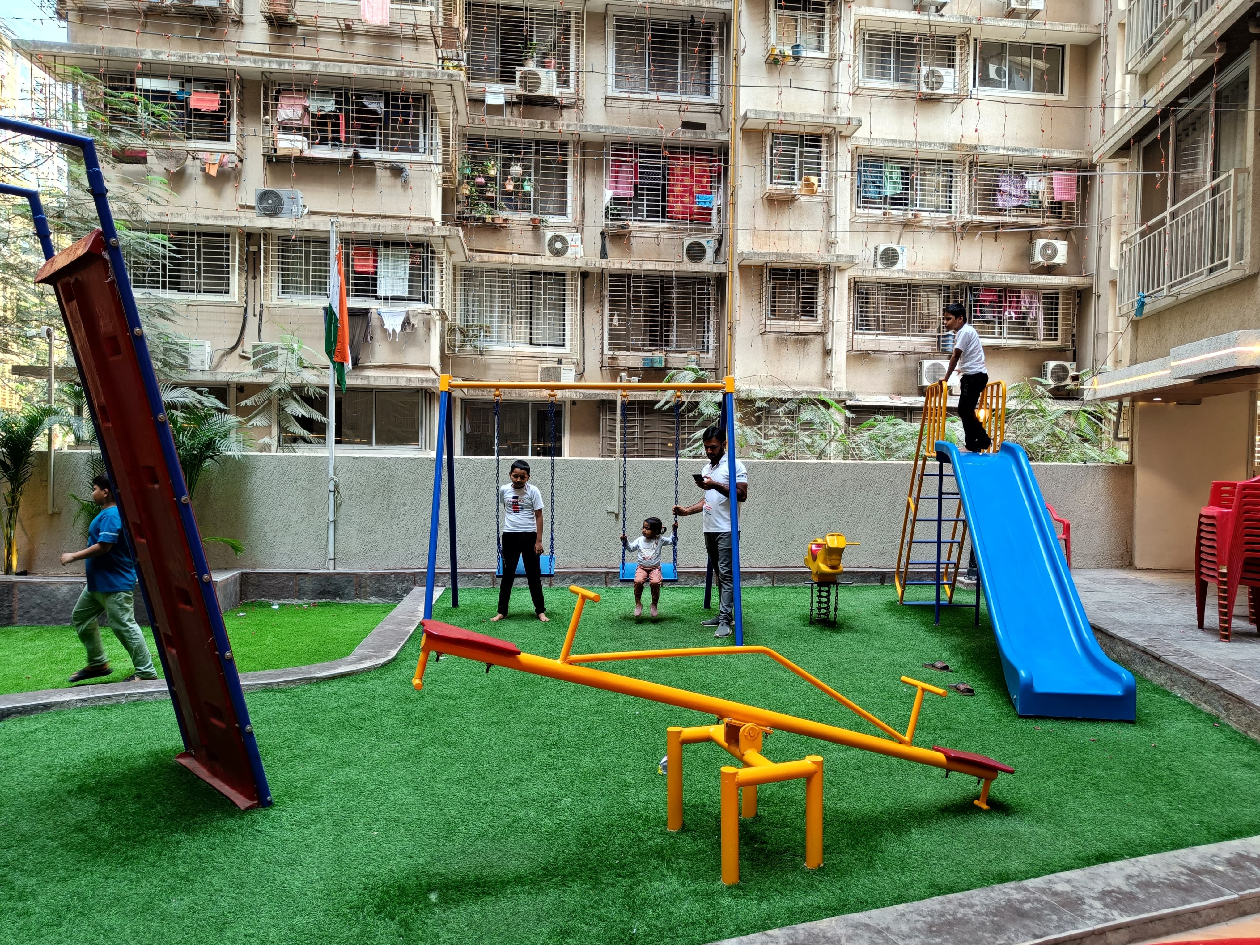 • The property is located on the 4th floor of the 15-story Matruchaya CHS Chembur and