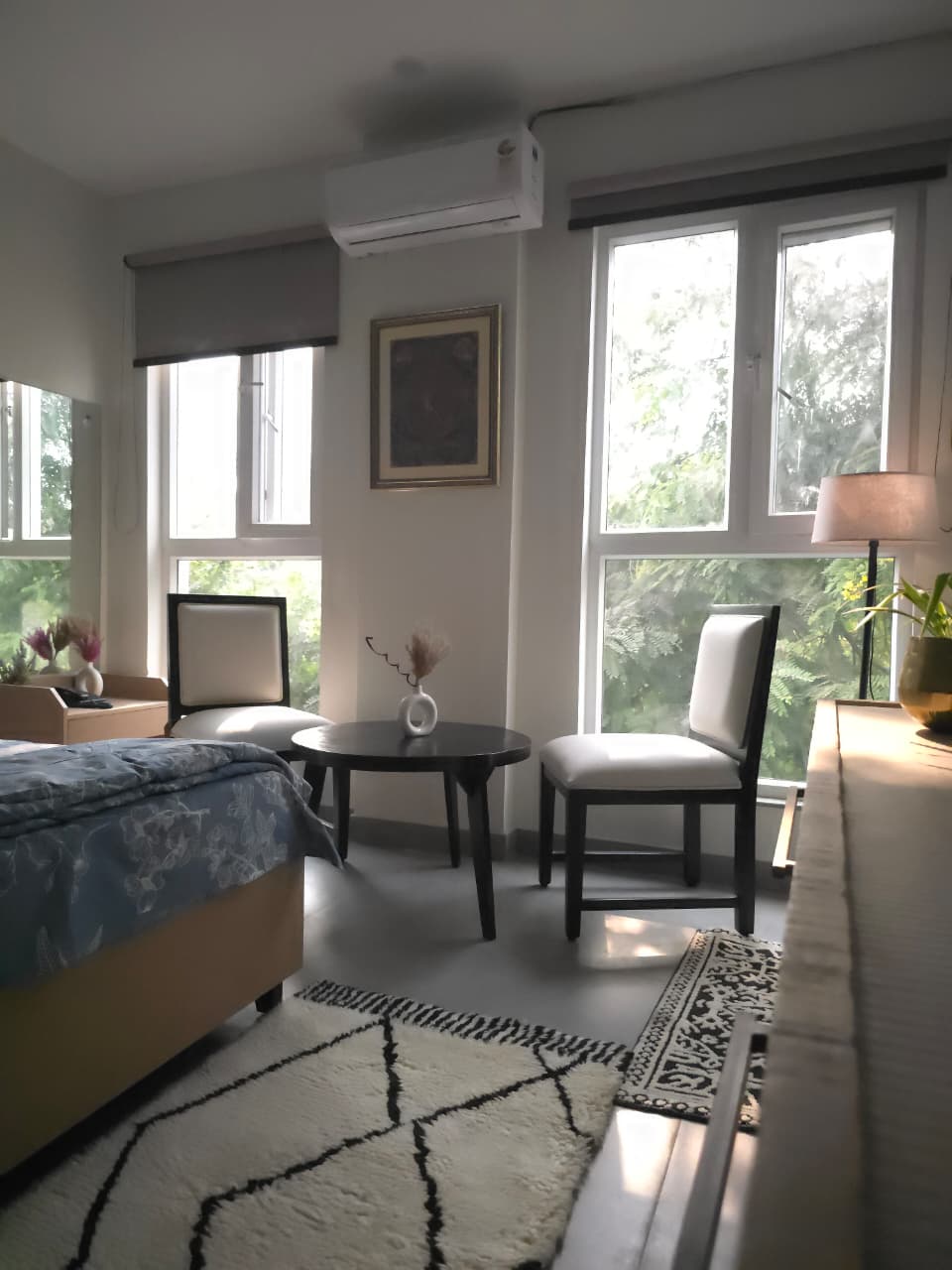 This furnished one and a half bedroom, one bathroom independent house in Noida Sector 52 offers a serene living experience with a lovely park view, perfect for families, bachelors, or females seeking a safe and secure locality.