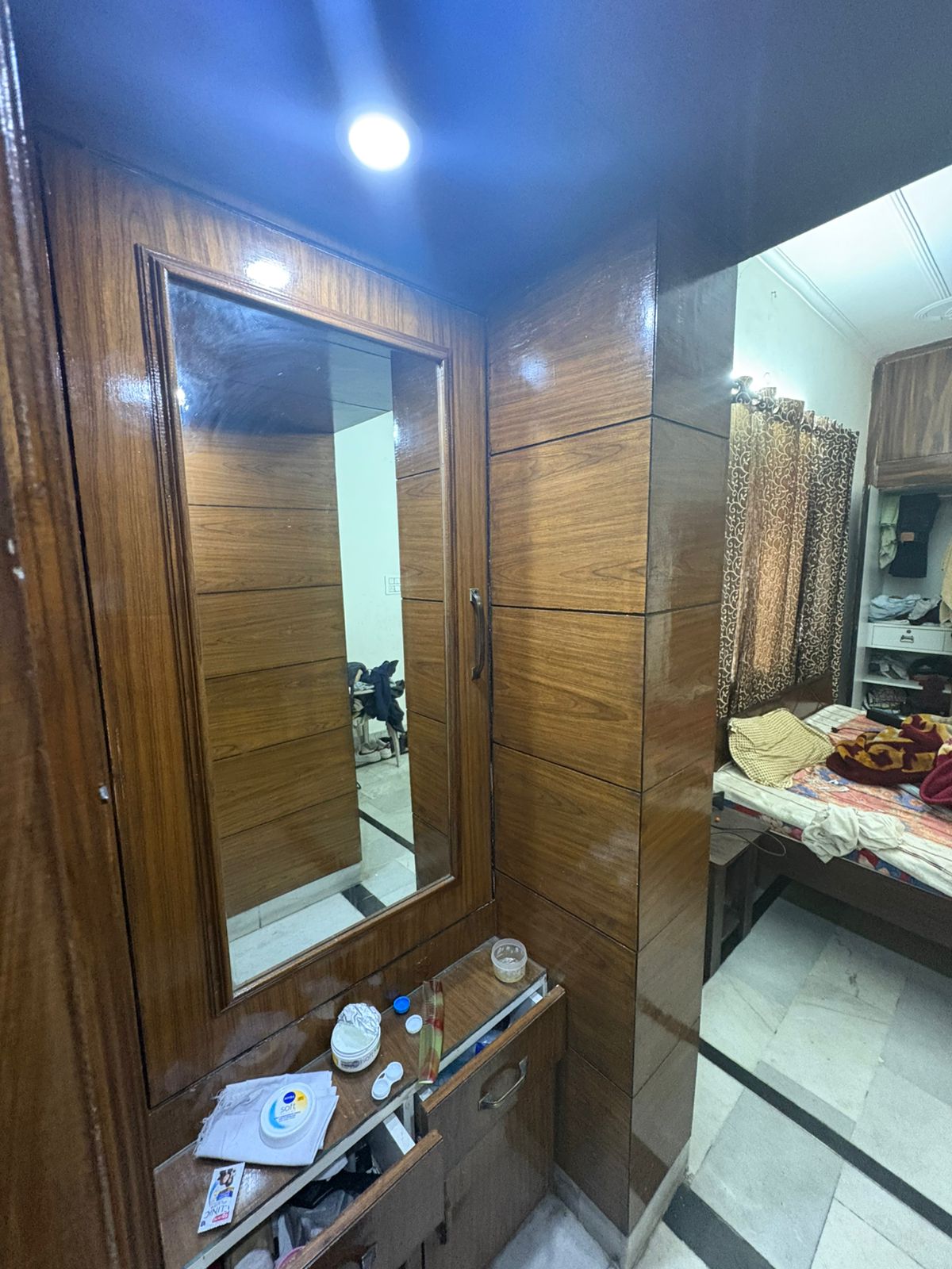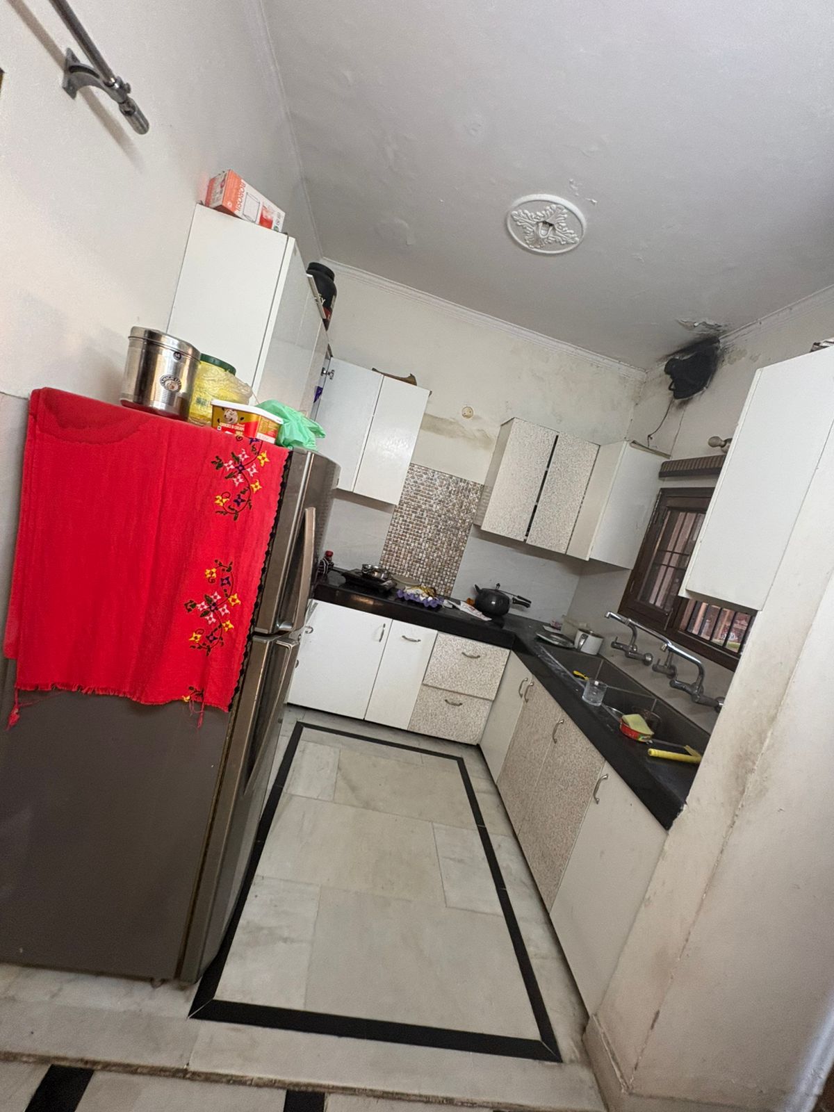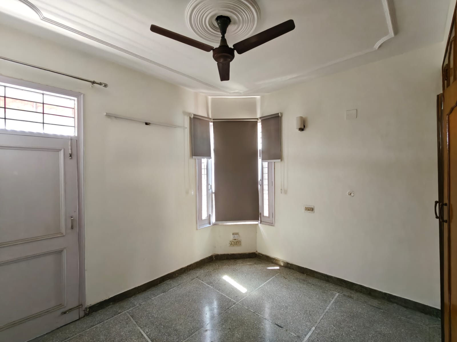• Situated on the fourth floor of a four-story building, it comes with essential amenities like power