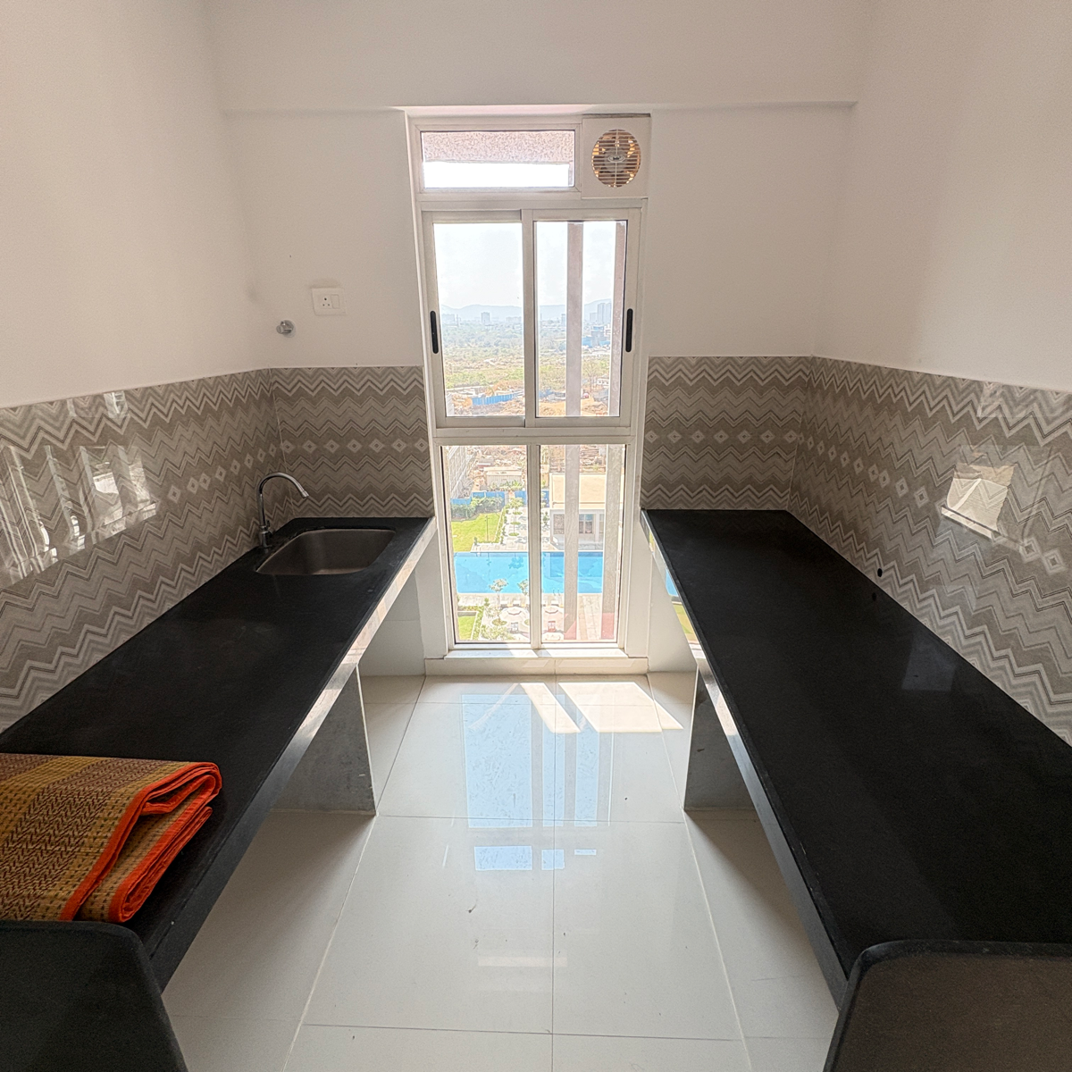 This unfurnished one-bedroom Flats in Lodha Palava Downtown Dombivli East offers a tranquil garden view from its 14th-floor position within an 18-story building.