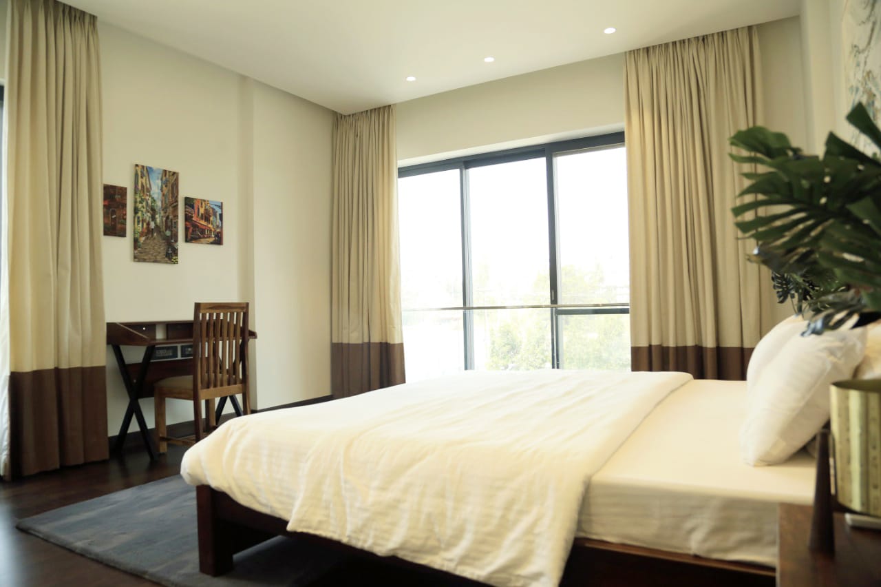 A tranquil living space bathed in natural light and offering a peaceful Garden View is now available for rent on Bannerghatta Road in Bangalore.