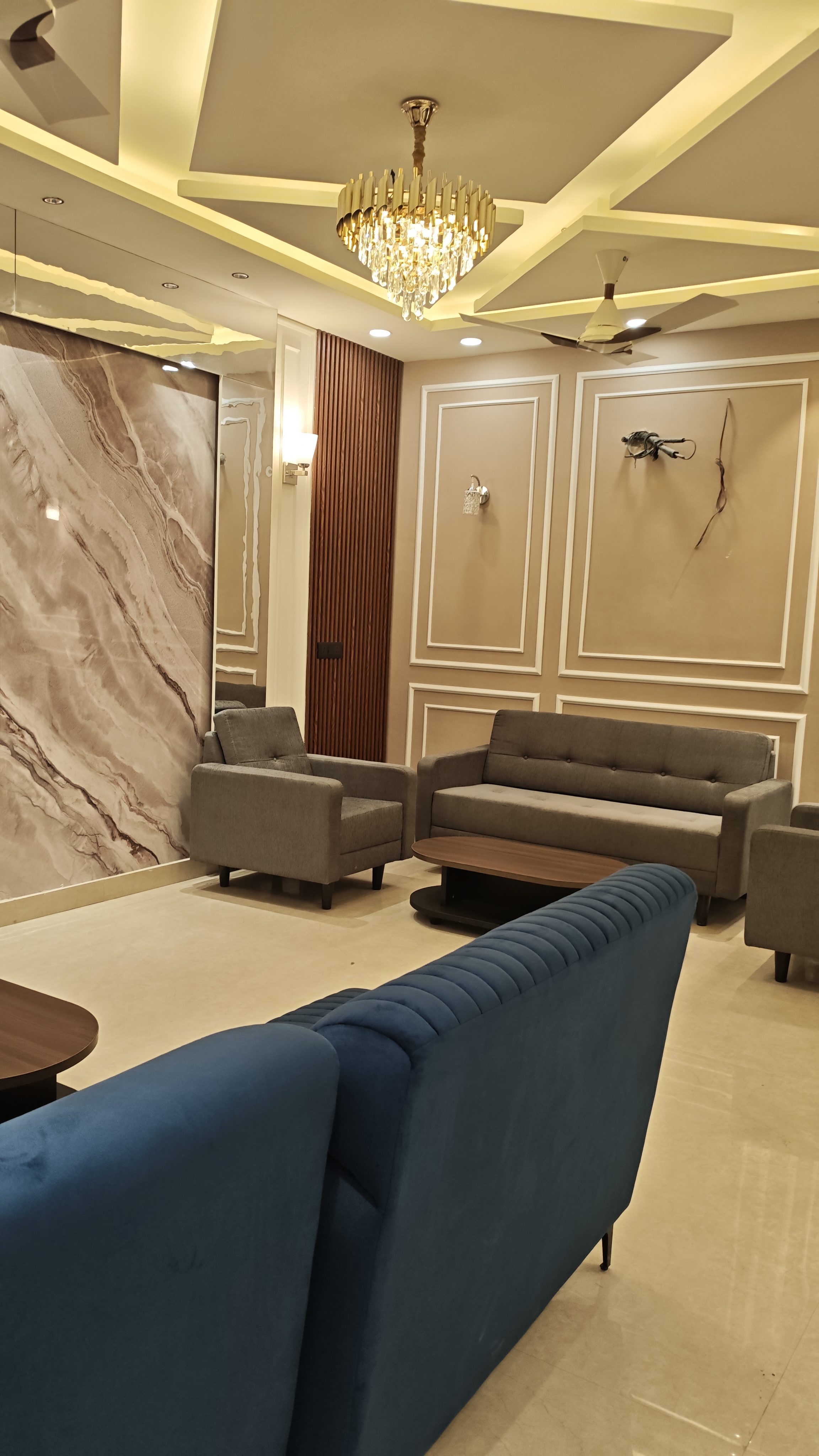 • Spanning 500 square yards, this third-floor residence boasts tasteful interiors and a