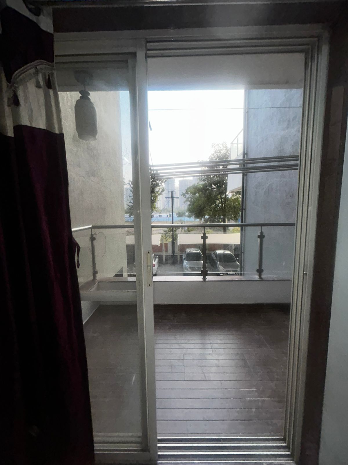 • It features a balcony with a road