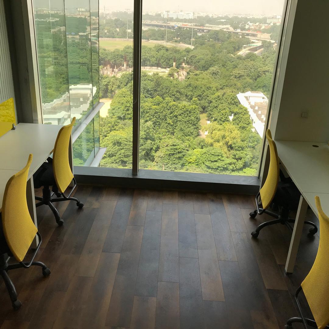 Discover an impressive 17500 Square Feet furnished office space for rent in Hi Tech City, Hyderabad, offering a prominent road view from the fifth floor.
