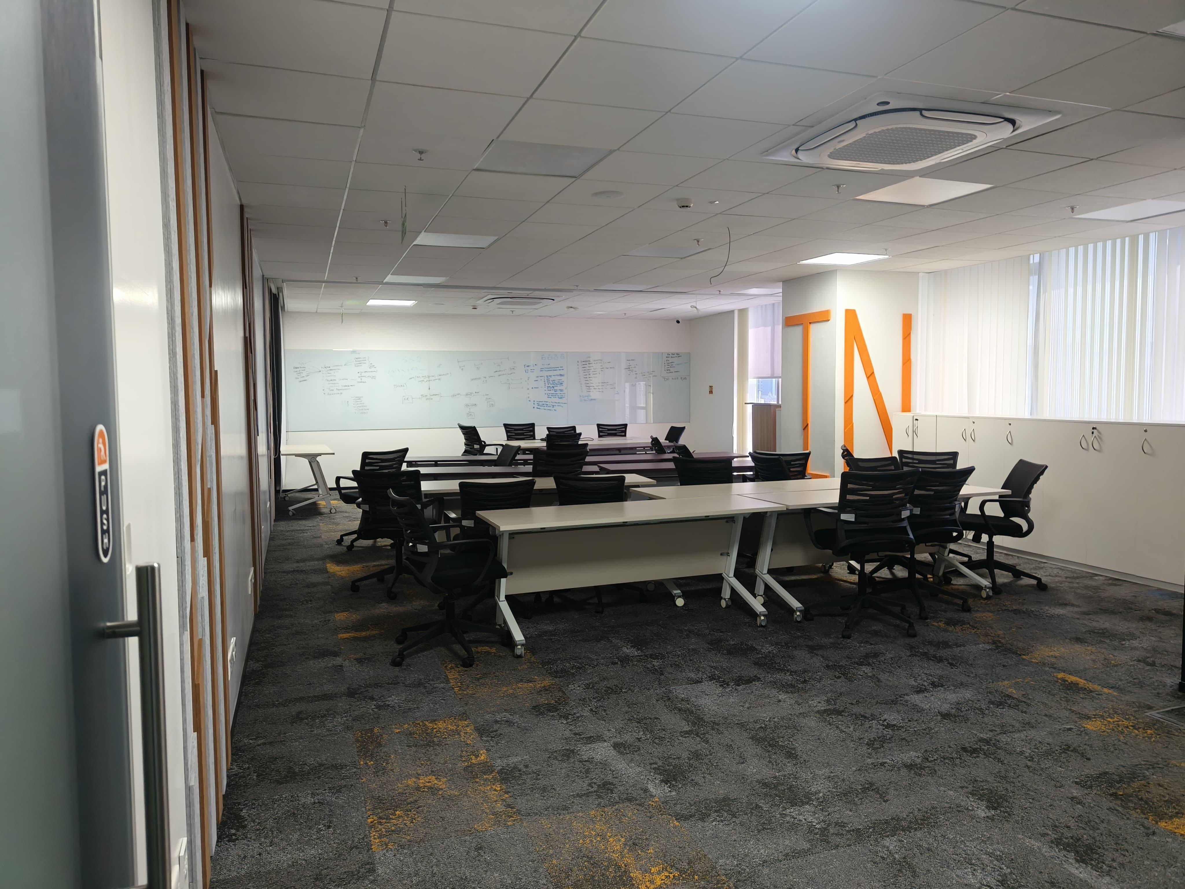 This furnished office space in Magarpatta City, Pune, offers a commanding road view from the 18th floor, providing ample natural light and a dynamic outlook for your business.
