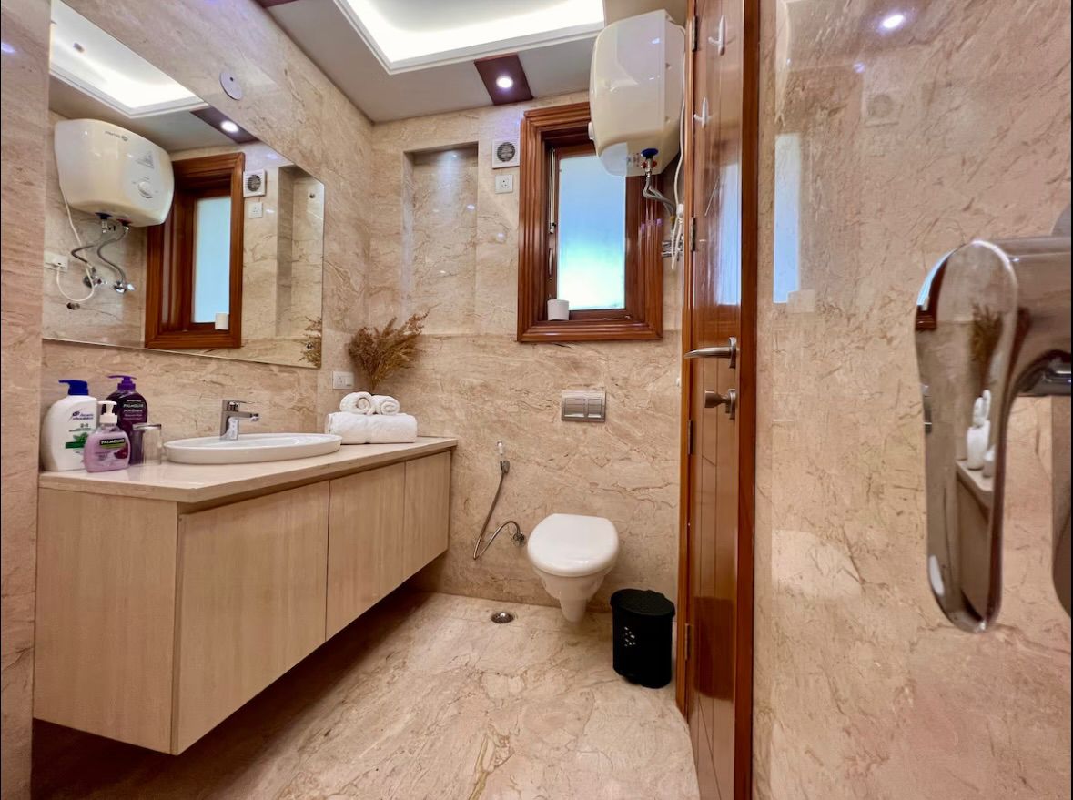 This 3 bedroom, 2 bathroom builder floor in Malviya Nagar, Delhi, is a fantastic option for families and bachelors alike seeking a home filled with plenty of sunlight and excellent ventilation, available for rent at 45 thousand per month.