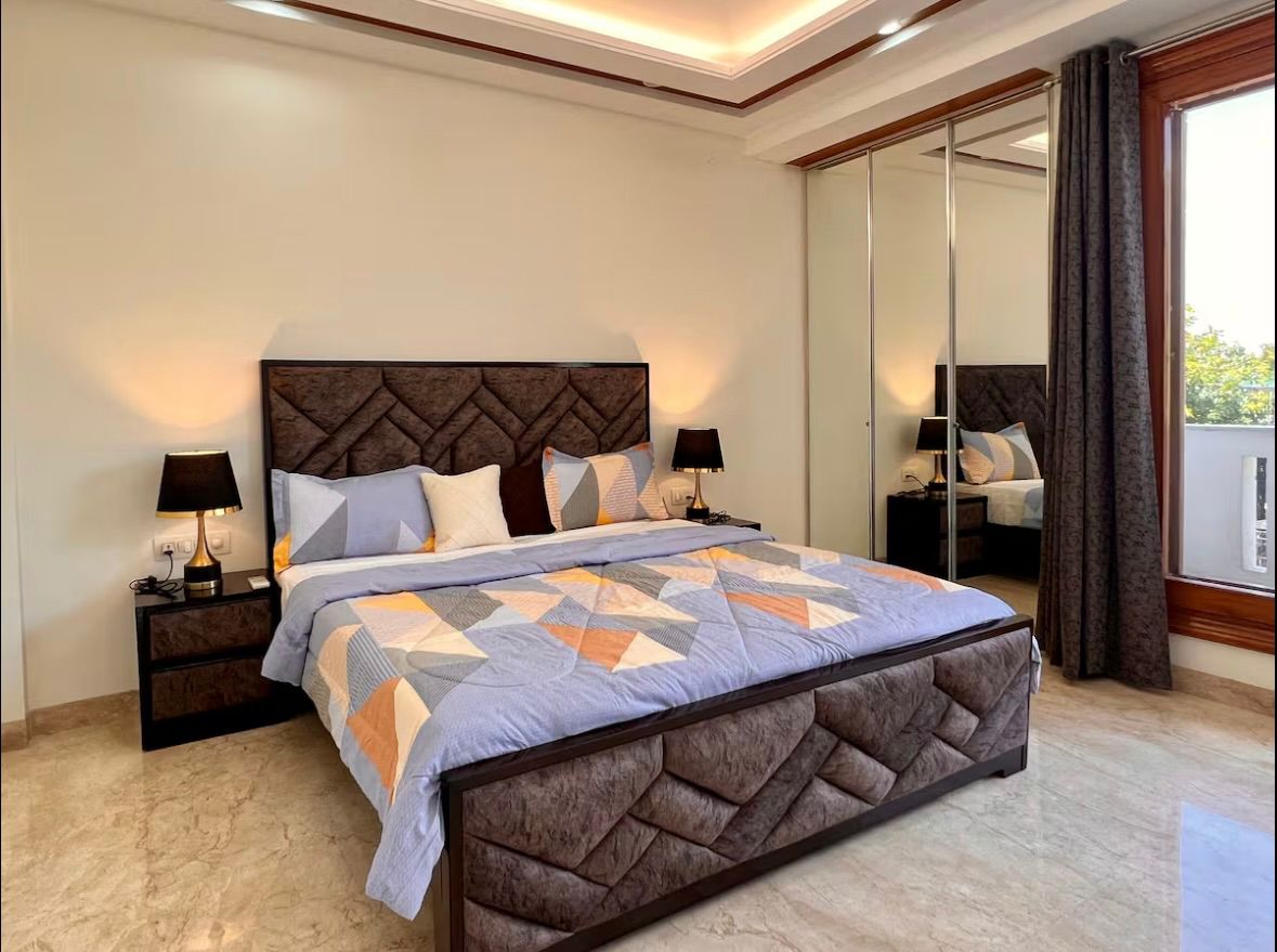 This furnished, two-bedroom, two-bathroom Flats in Saket, Delhi, is ready for you to move in.
