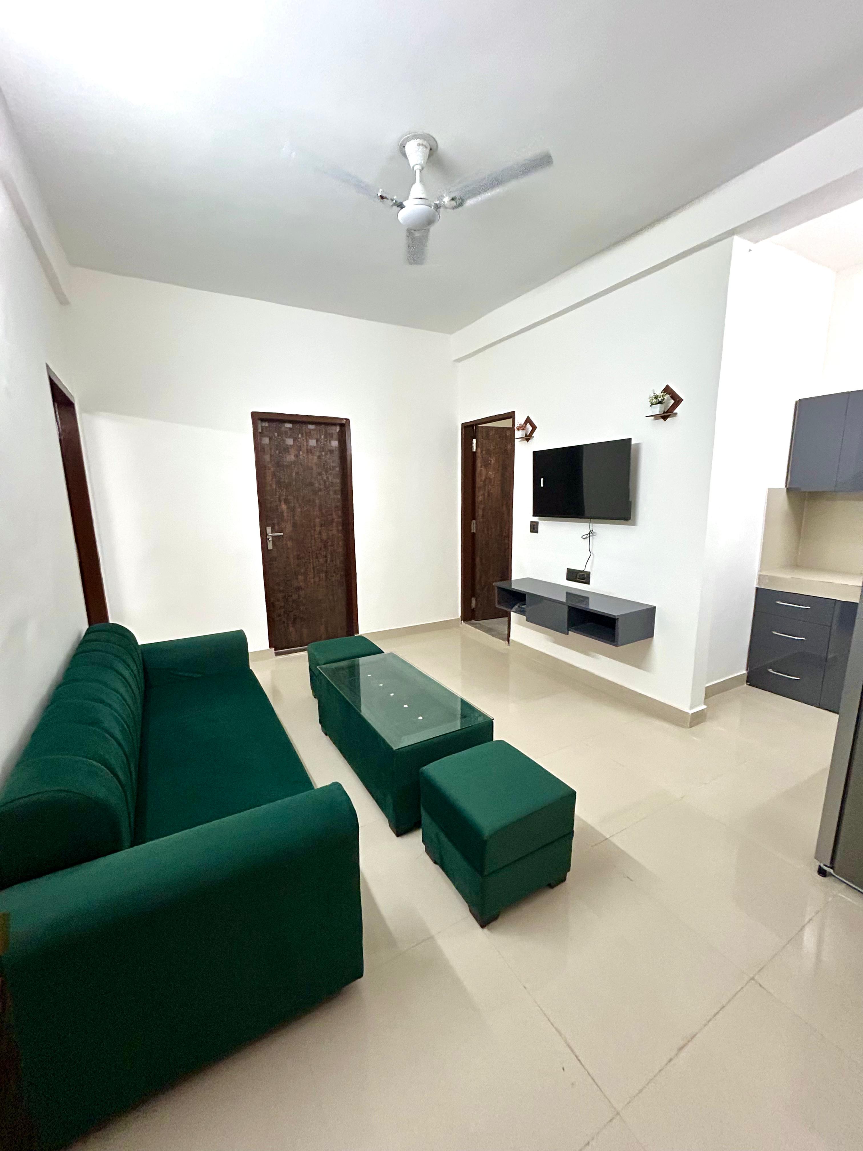 This furnished 1 bedroom, 1 bathroom builder floor in Gurgaon's Sector 52 presents a furnished living space perfect for individuals or couples seeking convenience and a touch of luxury.