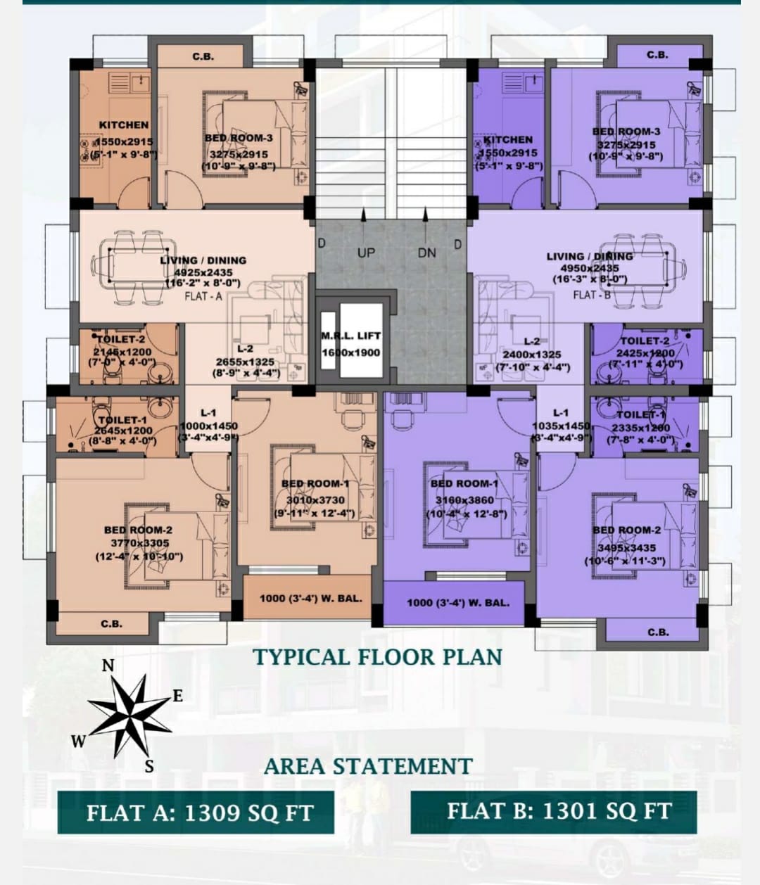 This unfurnished 3 bedroom, 2 bathroom Flats in Narendrapur, Kolkata offers a comfortable living space spanning 984 square feet on the third floor of a four-story building.