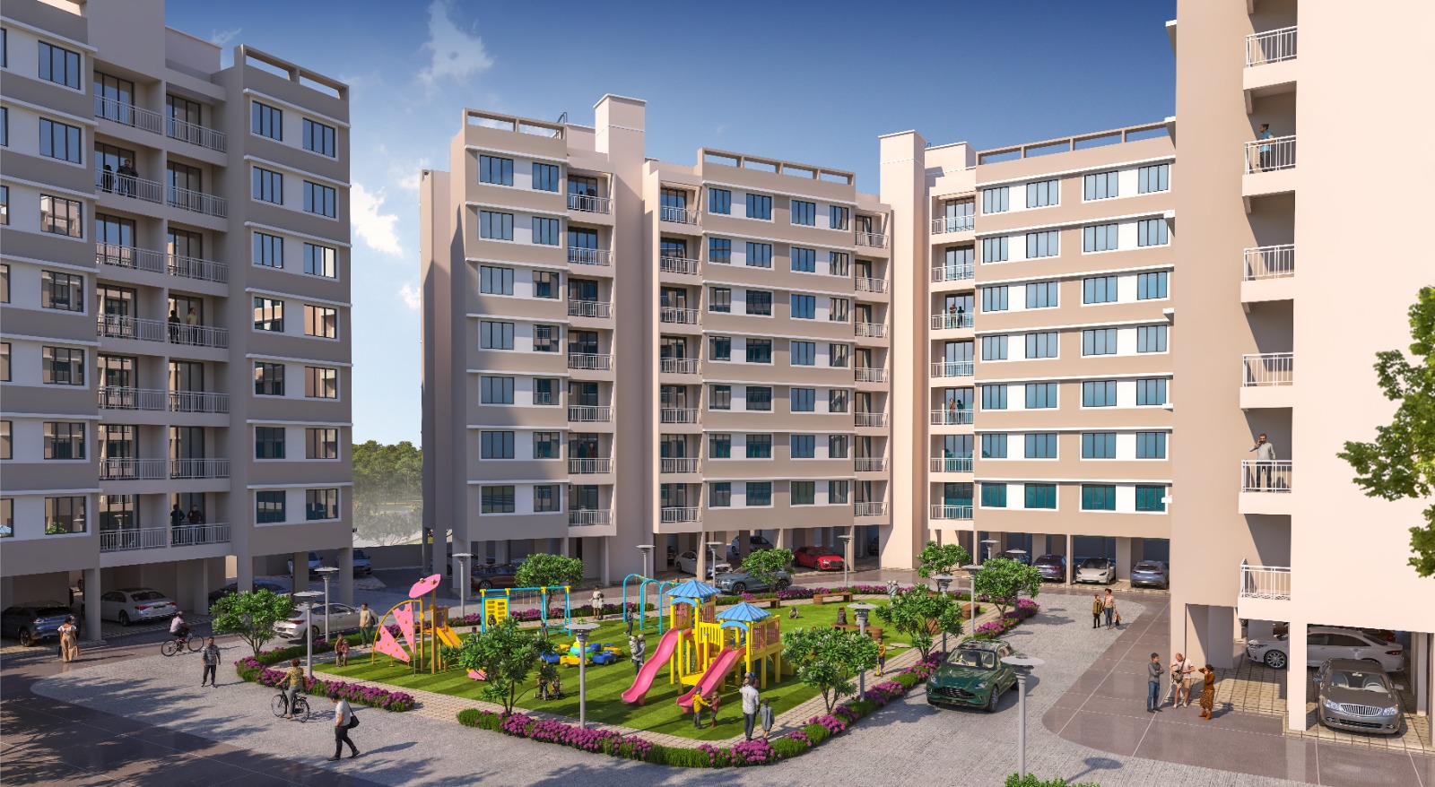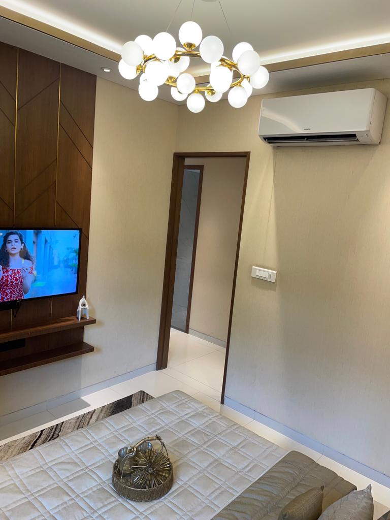 This semi-furnished two-bedroom, two-bathroom Flats in Navi Mumbai Vishesh Balaji Symphony offers a comfortable and amenity-rich lifestyle on the 23rd floor, with a great road view and 700 square feet of well-maintained living space, all for 90 Lac.