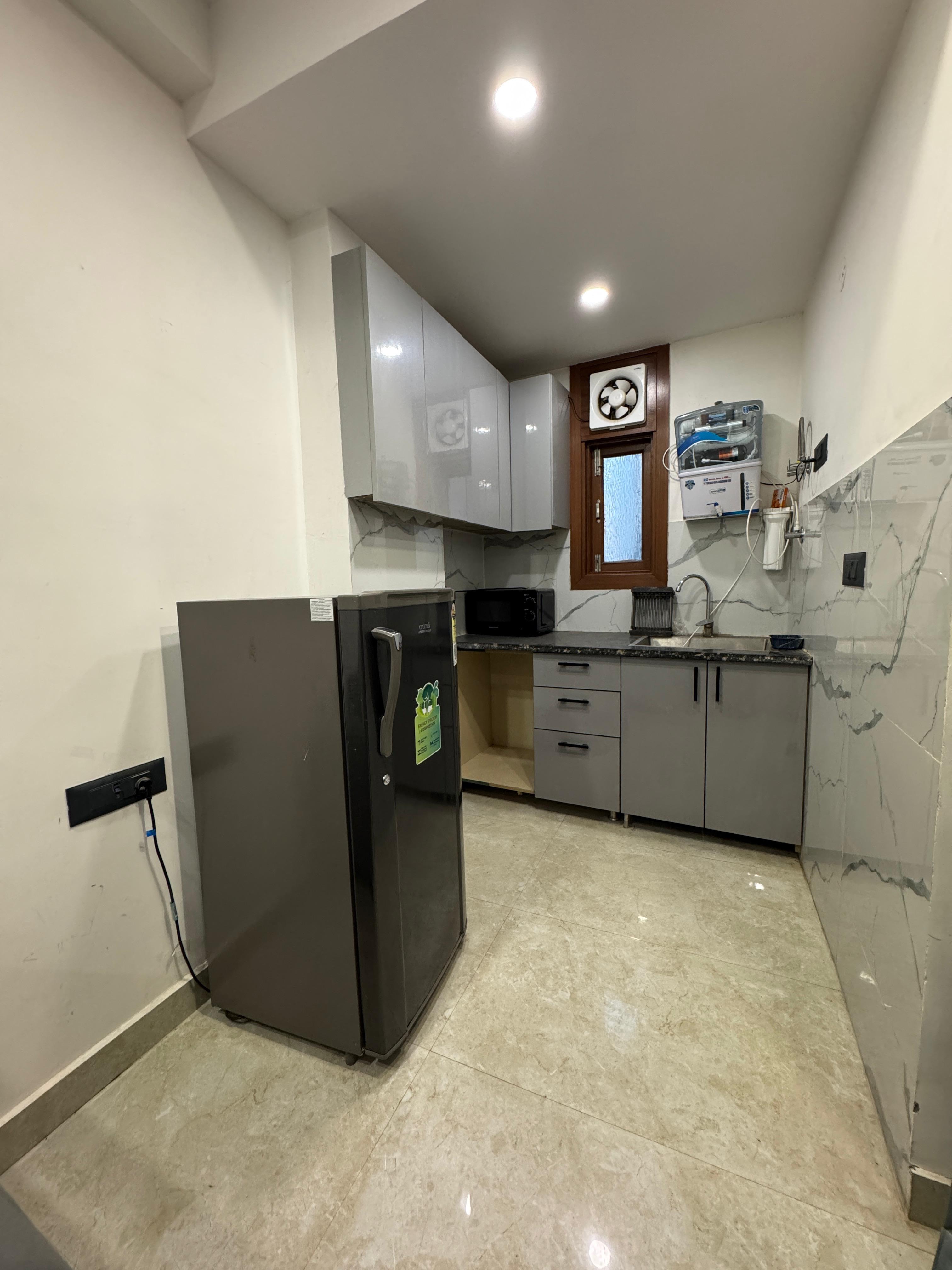 This newly built, semi-furnished builder floor in Chattarpur, Delhi, presents a unique investment opportunity for those looking for a compact and well-equipped home.