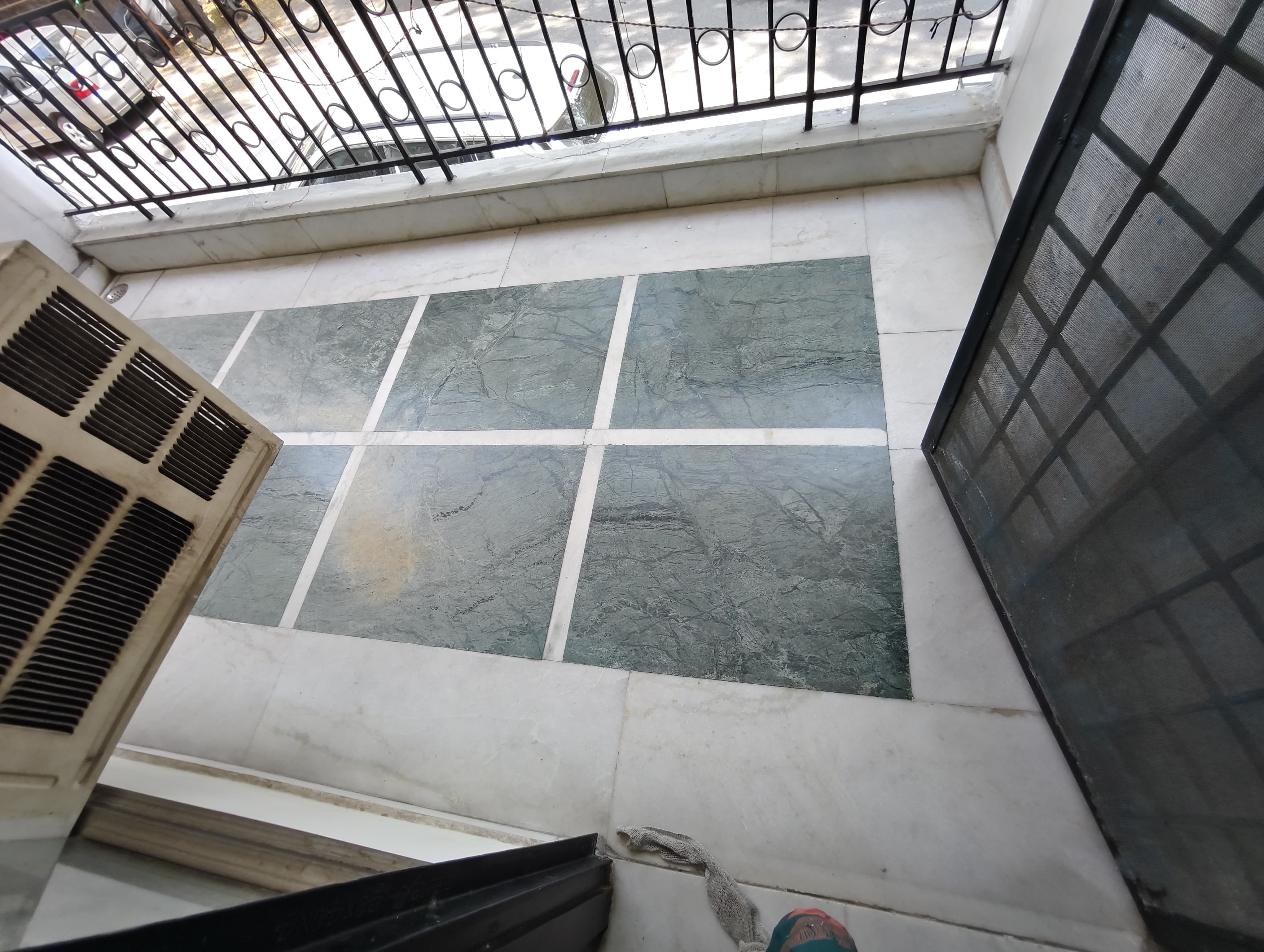 • Situated on the first floor of a four-story building, the apartment offers a