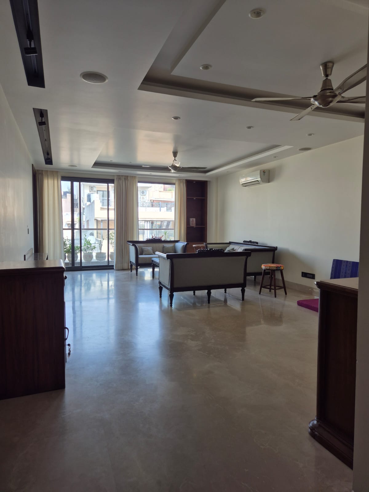 This semi-furnished 3.5 bedroom builder floor in Rajouri Garden offers a comfortable and convenient living experience.