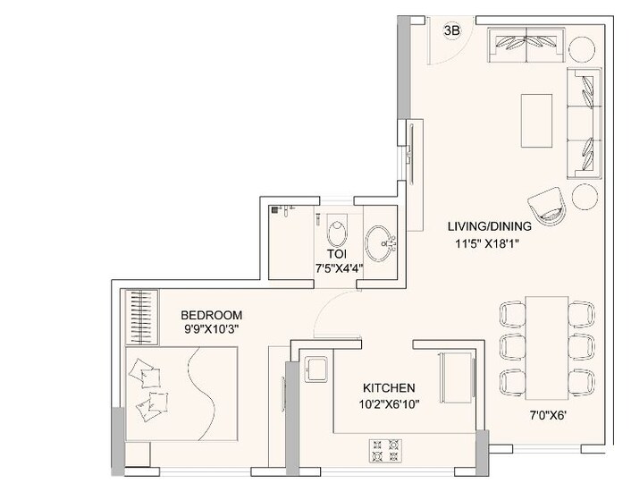 This unfurnished one-bedroom Flats in Kandivali East, Mumbai, offers a serene garden view from its 12th-floor position within the Godrej Nest Kandivali project.