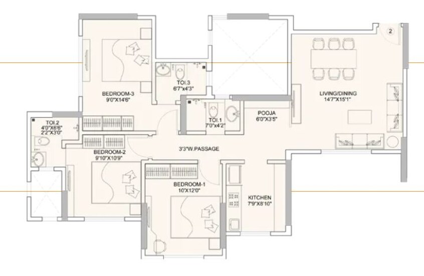 Discover a bright 2 bedroom, 2 bathroom Flats in Rustomjee Erika, Bandra East, Mumbai, listed for sale at 3.15 crore.