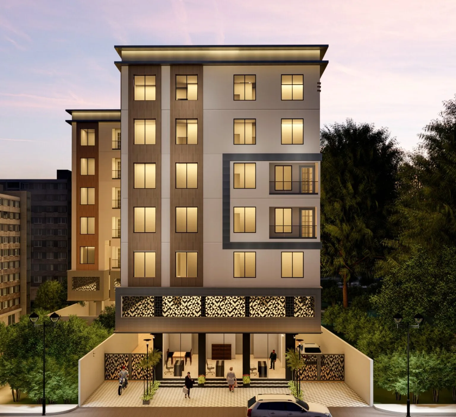 • The building, 8-10 years old, features essential amenities including kids' play areas, a