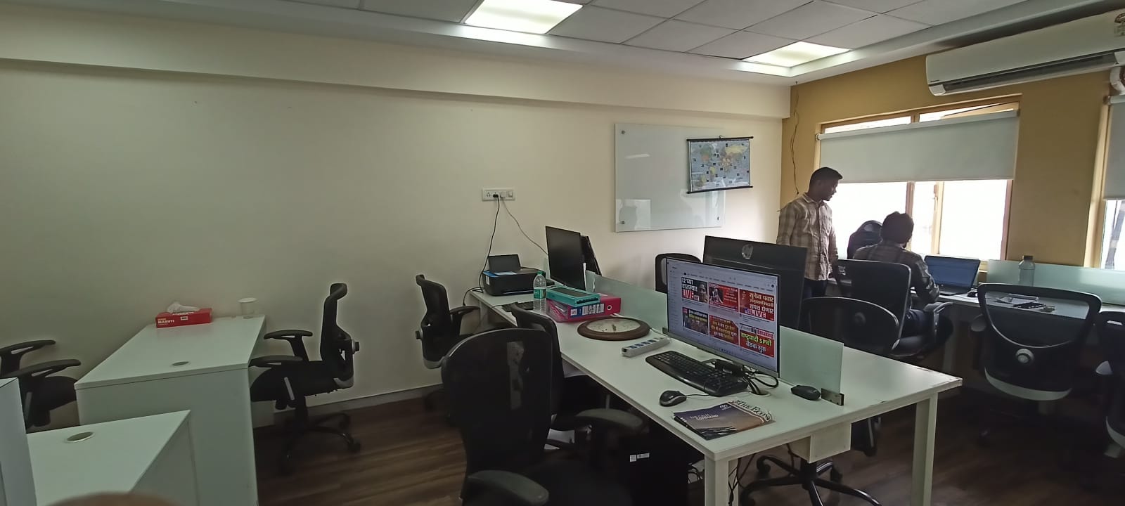 This furnished office space in Lower Parel is available for rent, offering a productive environment with a clear road view from the second floor.