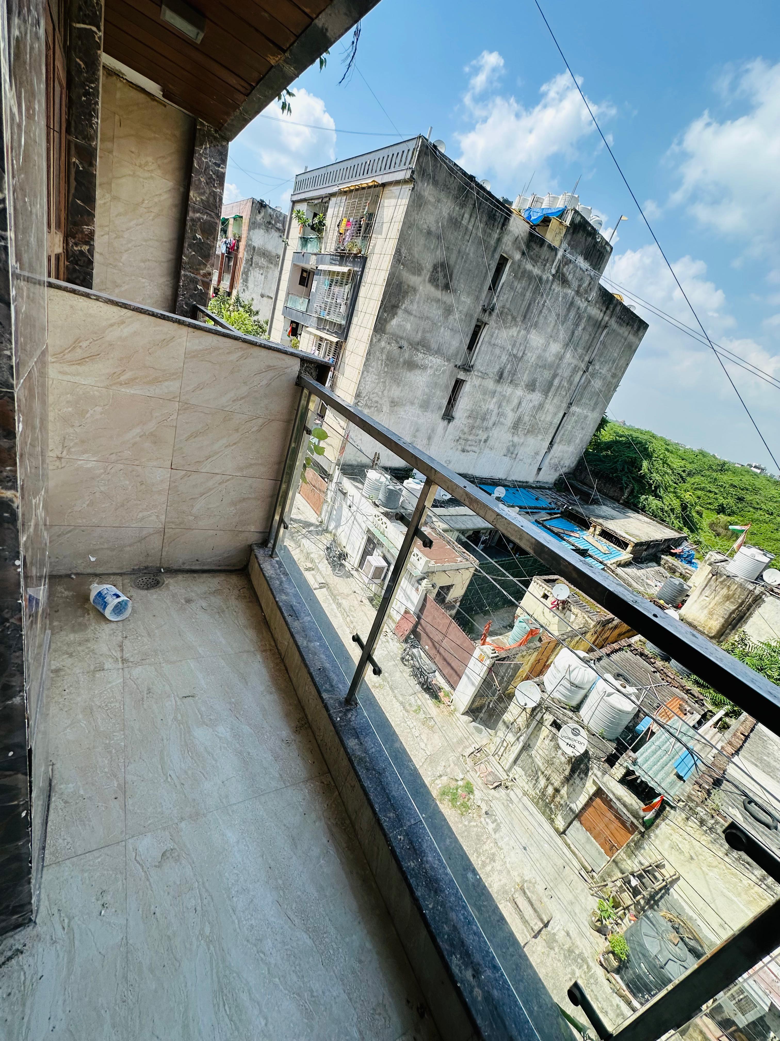 This road-facing builder floor in Saket offers 3 bedrooms and 3 bathrooms spread across 1200 square feet, ideal for a family seeking a well-ventilated living space.