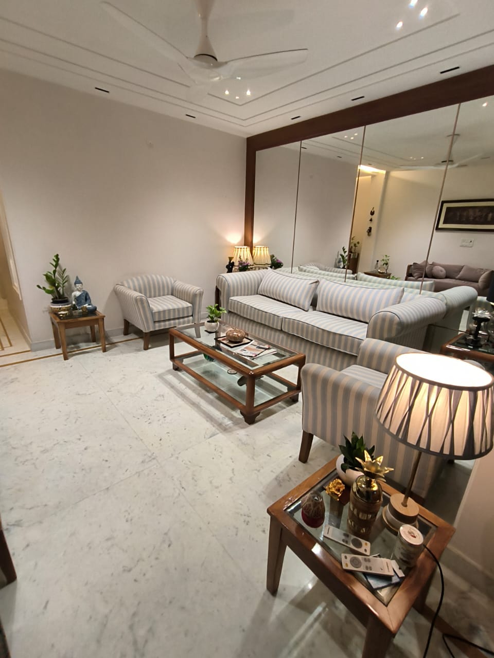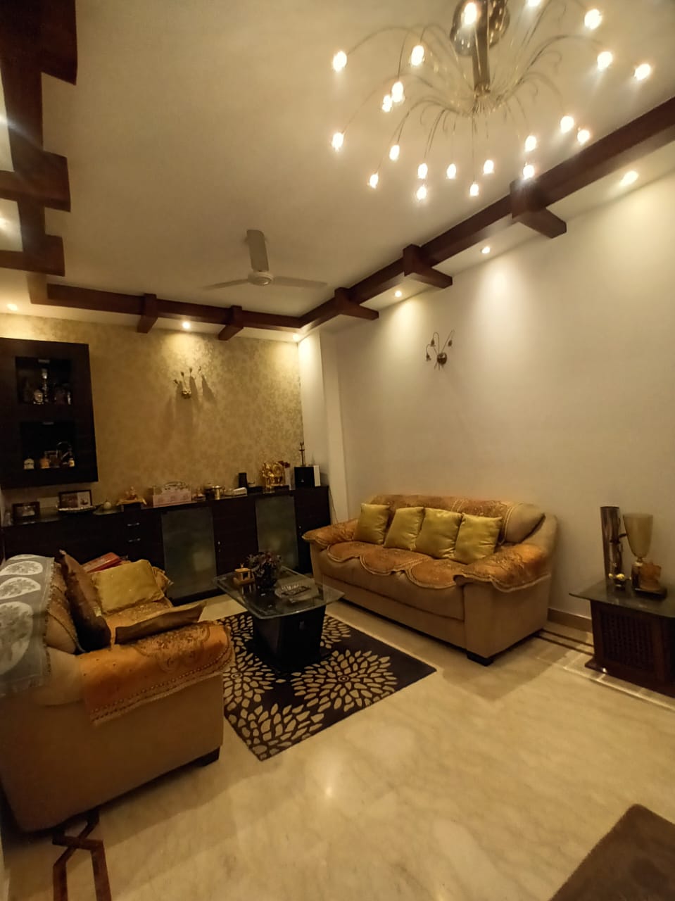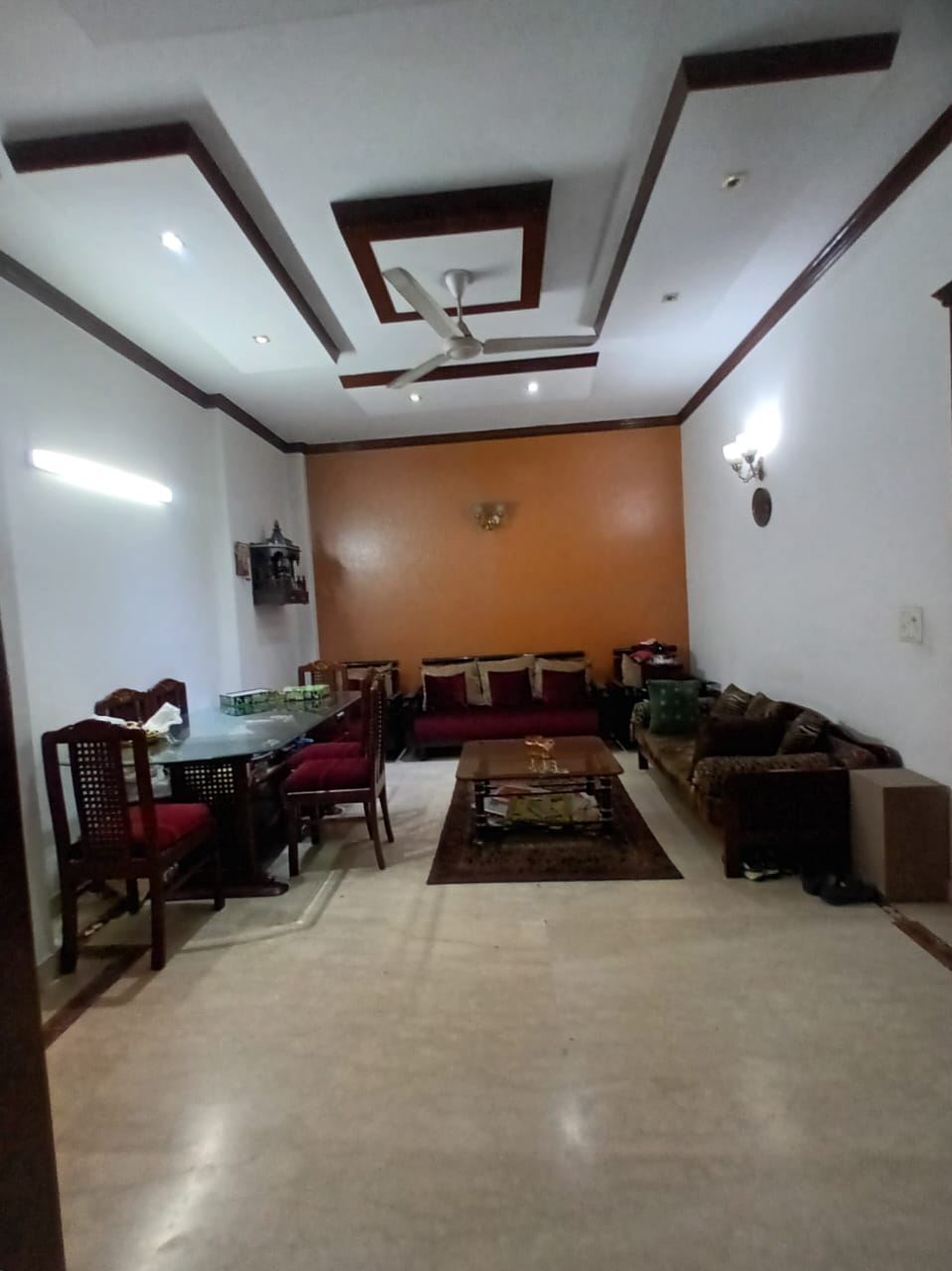 This furnished 4 bedroom, 3 bathroom builder floor in Saket, Delhi is available for rent at 60 thousand, offering 2400 Square Feet of living space on the first floor with a road view.