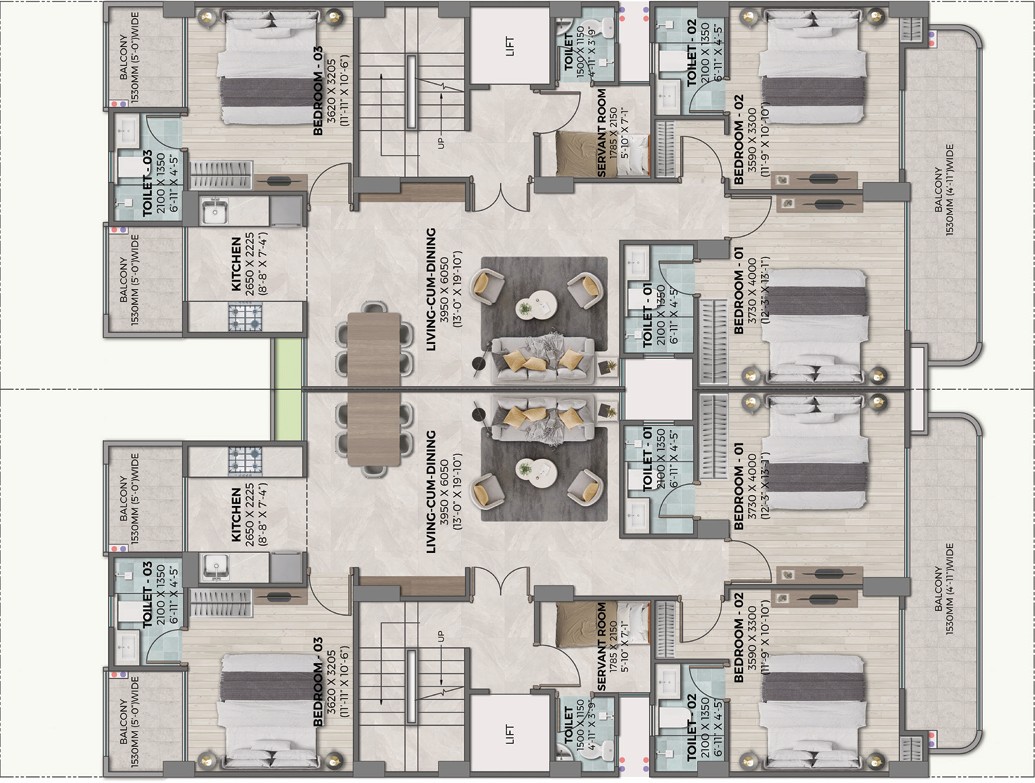 This 3-bedroom, 4-bathroom semi-furnished Flats in Signature Global Sarvim Sector 37D, Gurgaon, offers a generous 2040 square feet of living space with a tranquil garden view from its 10th-floor position within a 40-story building.