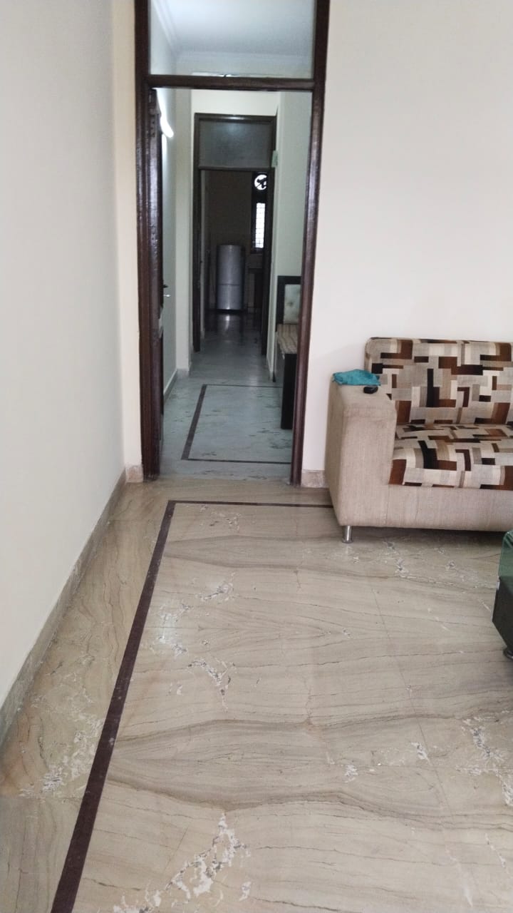 Live in a spacious 1800 square feet, semi-furnished builder floor in Greater Kailash, Delhi, offering 3 bedrooms and 3 bathrooms on the second floor of a four-story building, available for rent at 1.4 Lac.