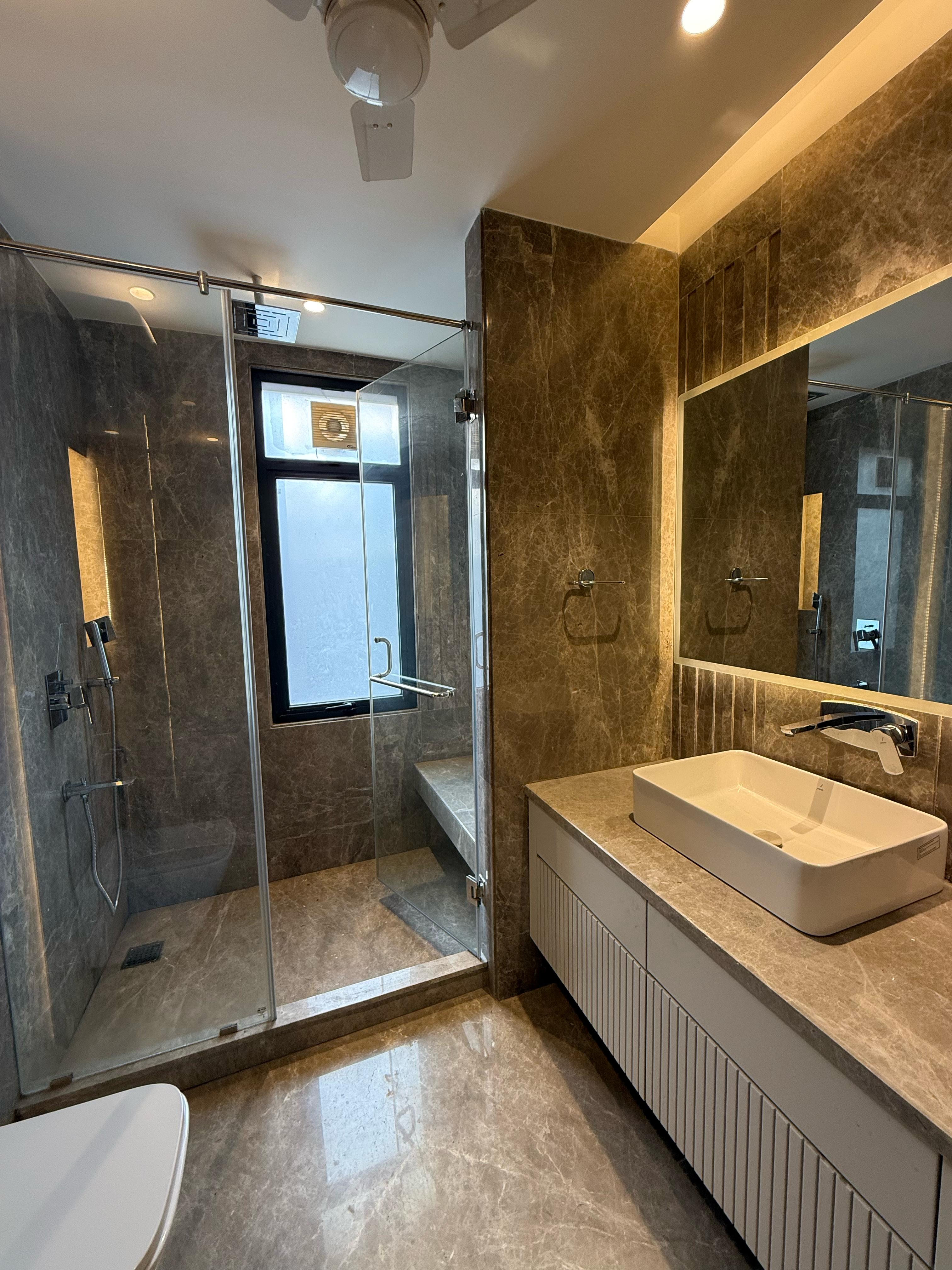 A prime builder floor in Greater Kailash, Delhi, offers a spacious living experience with 4 bedrooms and 5 bathrooms spread across 4450 square feet.
