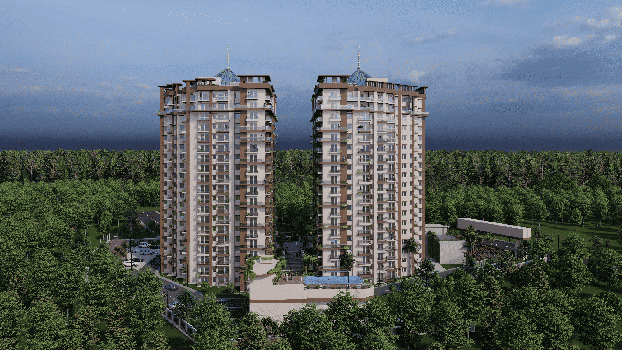 A truly attractive 2-bedroom Flats is now available for purchase in Varanasi, offering a fantastic pool view from its 7th-floor position.
