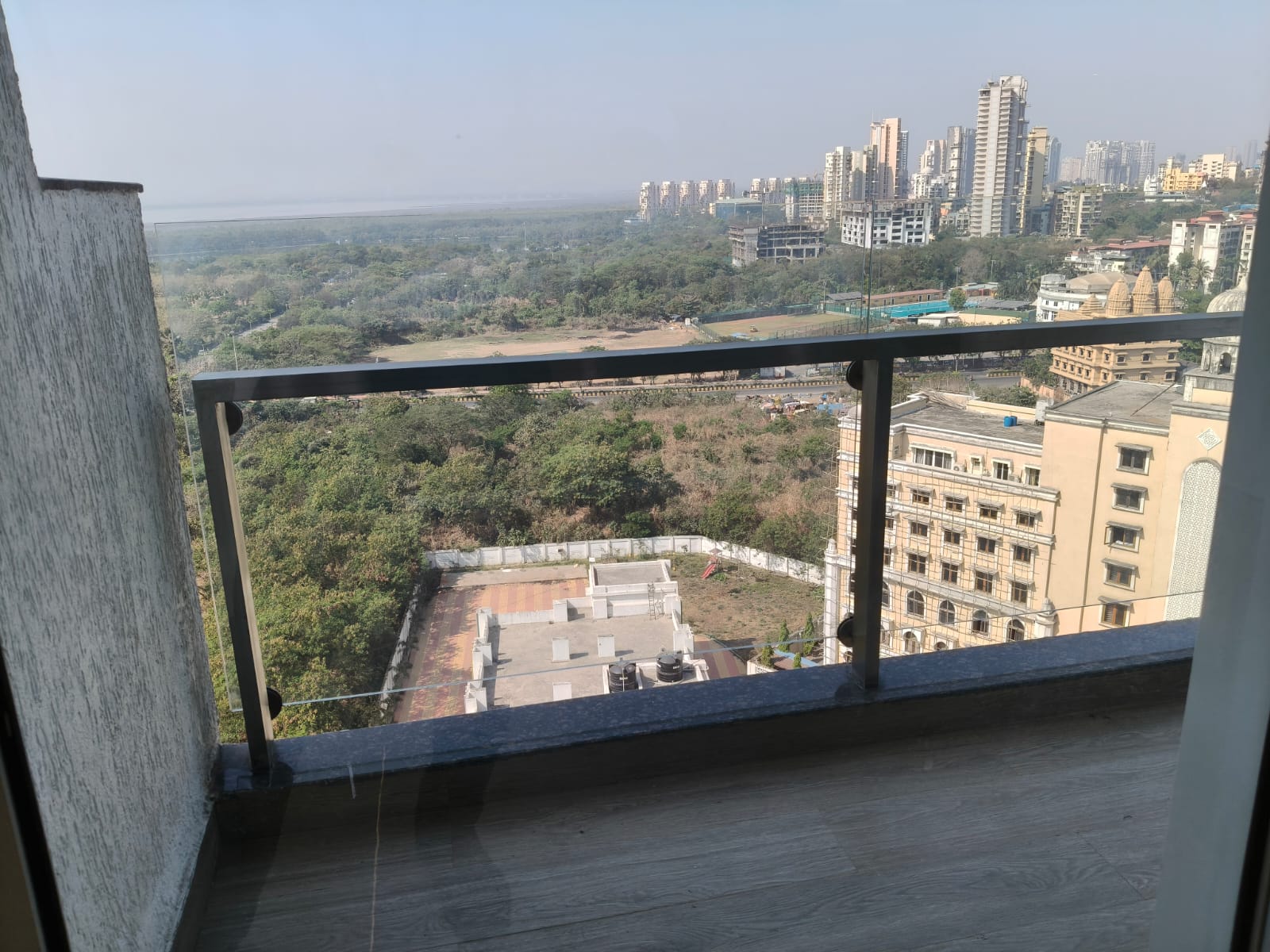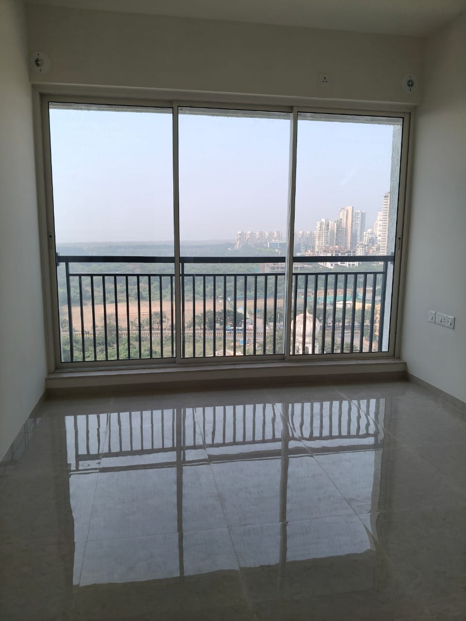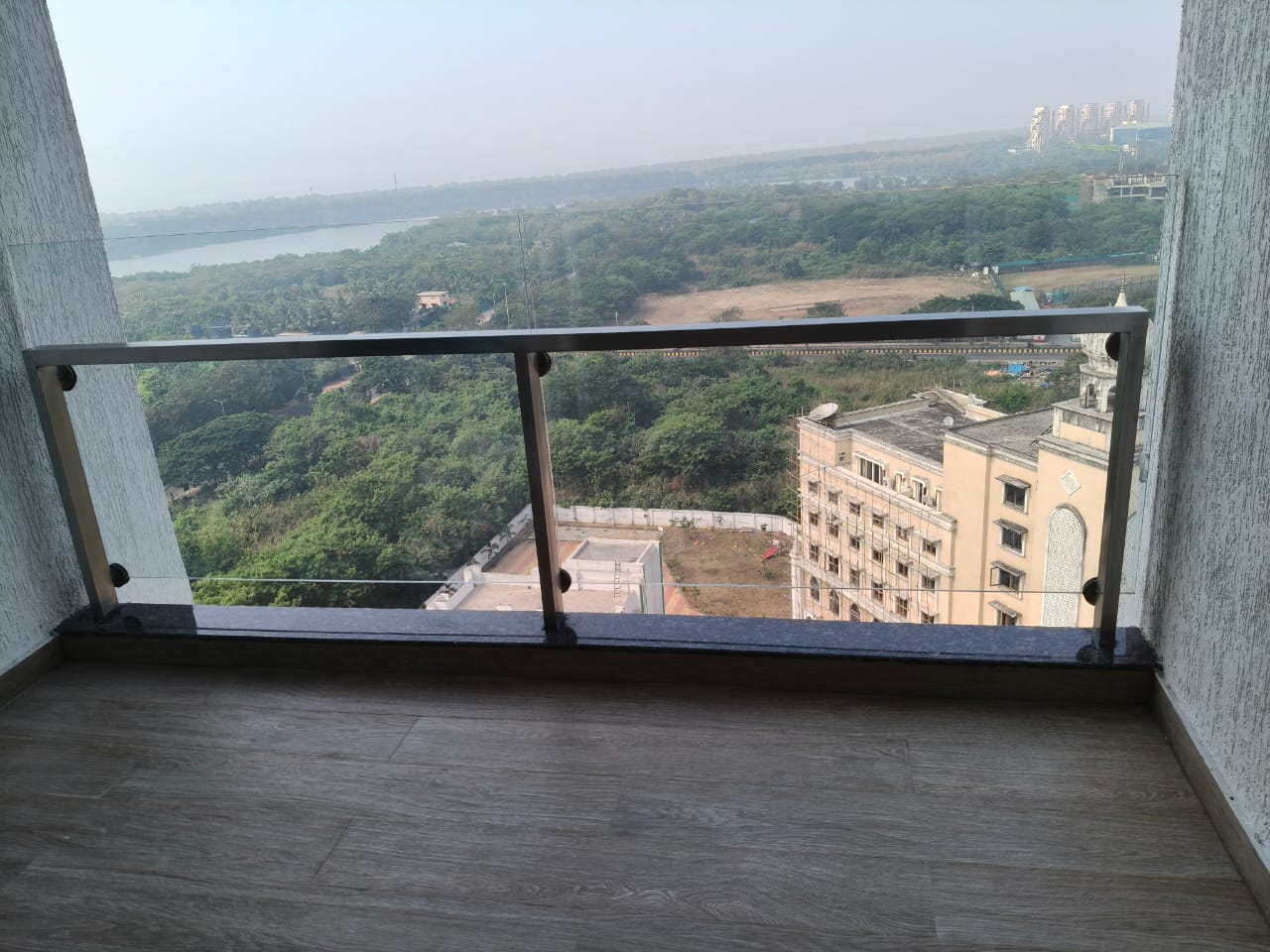 This semi-furnished two-bedroom Flats on the 17th floor of L&T Seawoods Residences Phase 2 in Seawoods, Navi Mumbai, offers 825 square feet of living space.