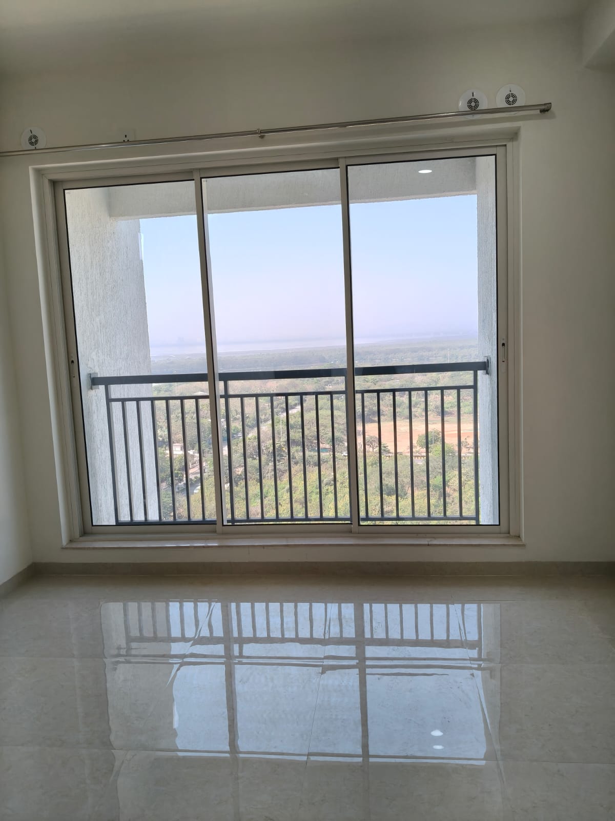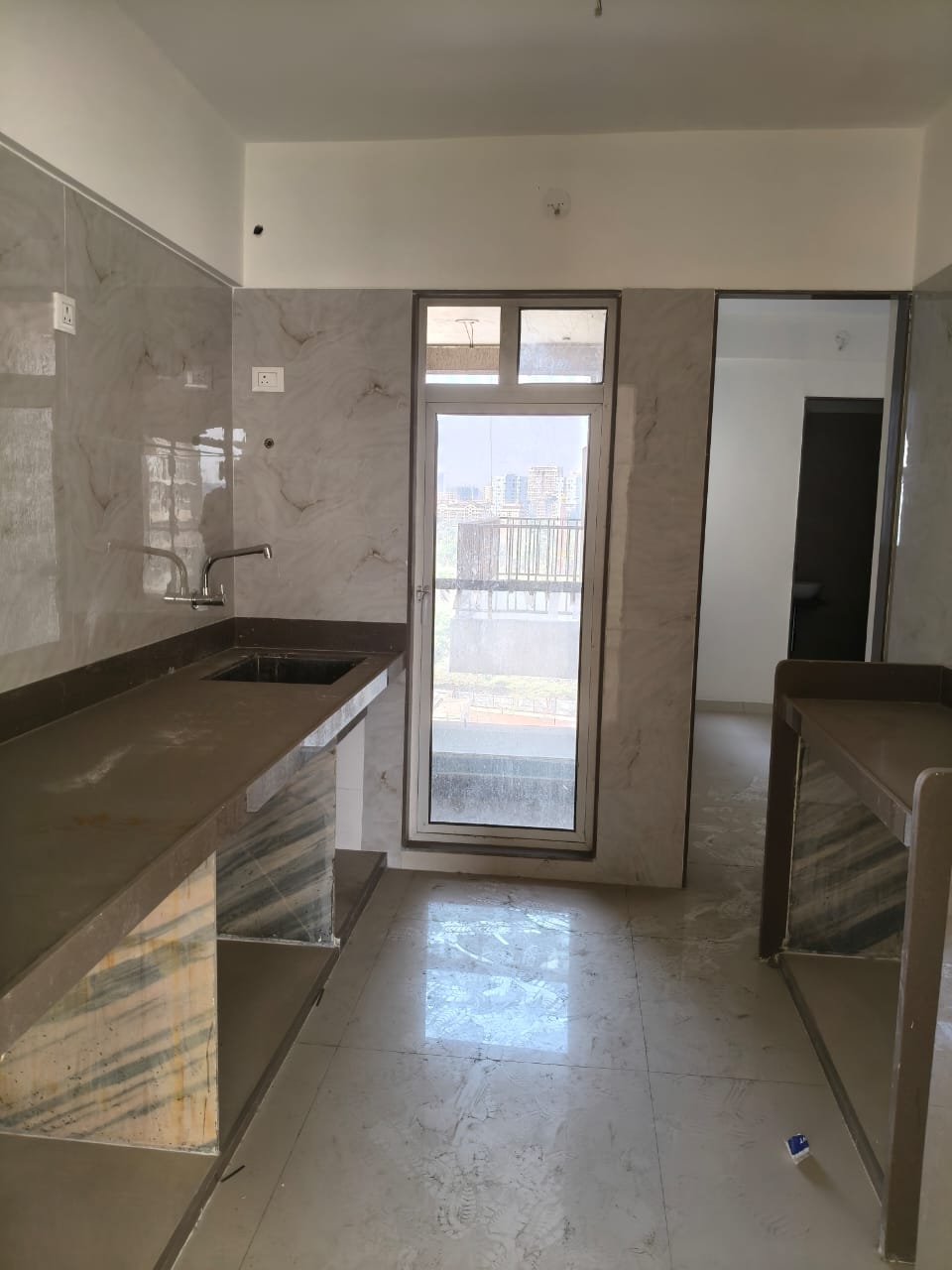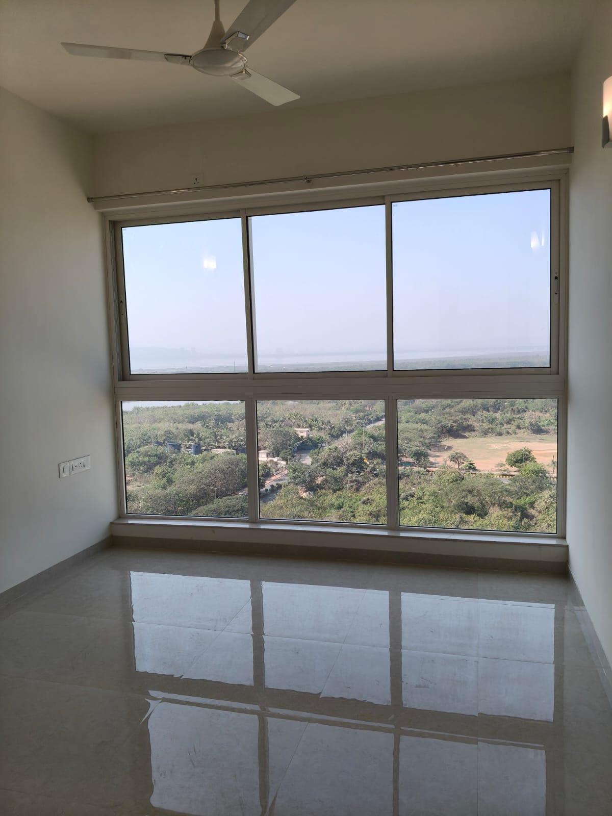 This semi-furnished two-bedroom Flats on the 17th floor of L&T Seawoods Residences Phase 2 in Seawoods, Navi Mumbai, offers 825 square feet of living space.