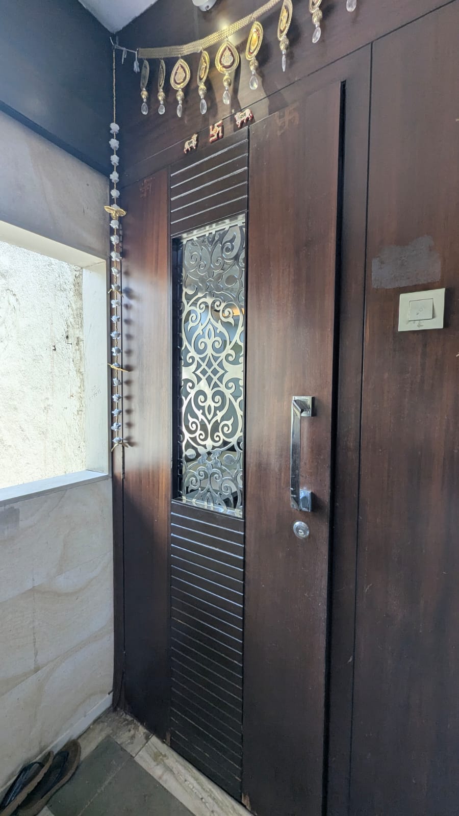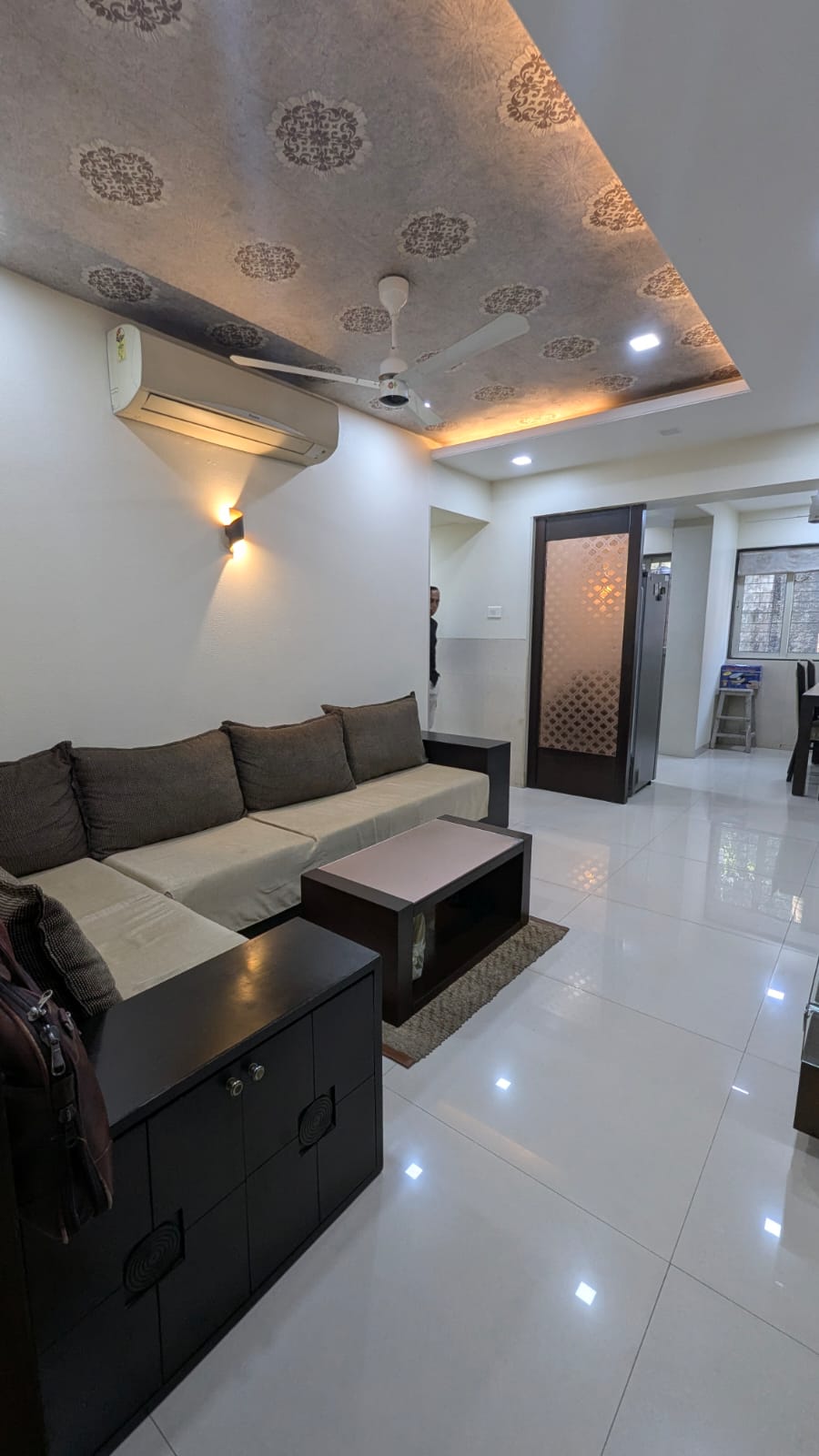 • Located on the second floor of a seven-story Siddhivinayak Mandir building, this semi-furnished 1000 square feet home offers ample space for comfortable