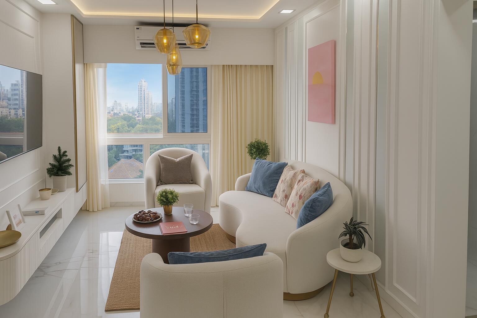 This spacious 1140 square feet Flats in Matunga West, Mumbai offers a stunning beach view from its 32nd-floor vantage point within the Spenta Medius project.