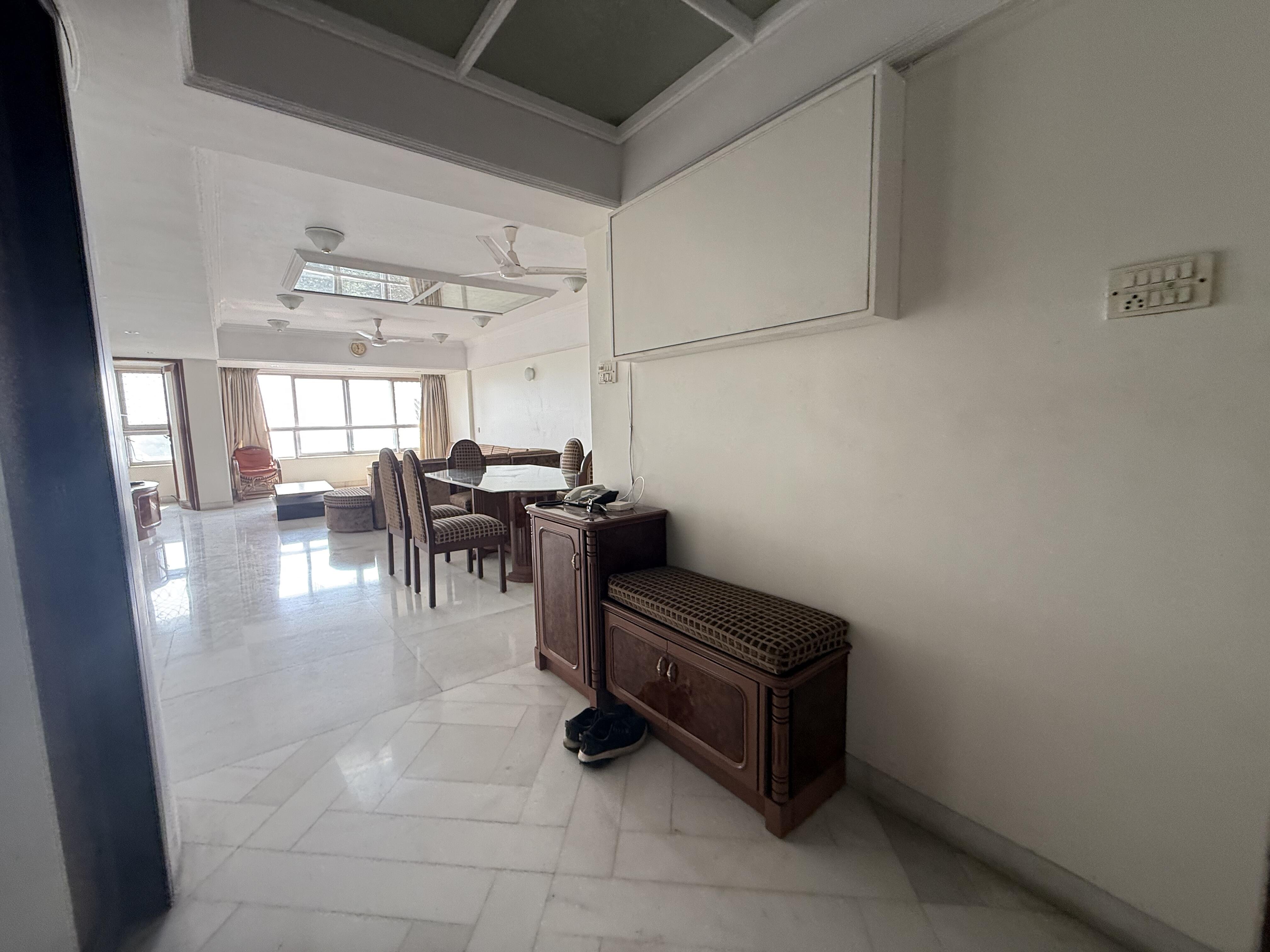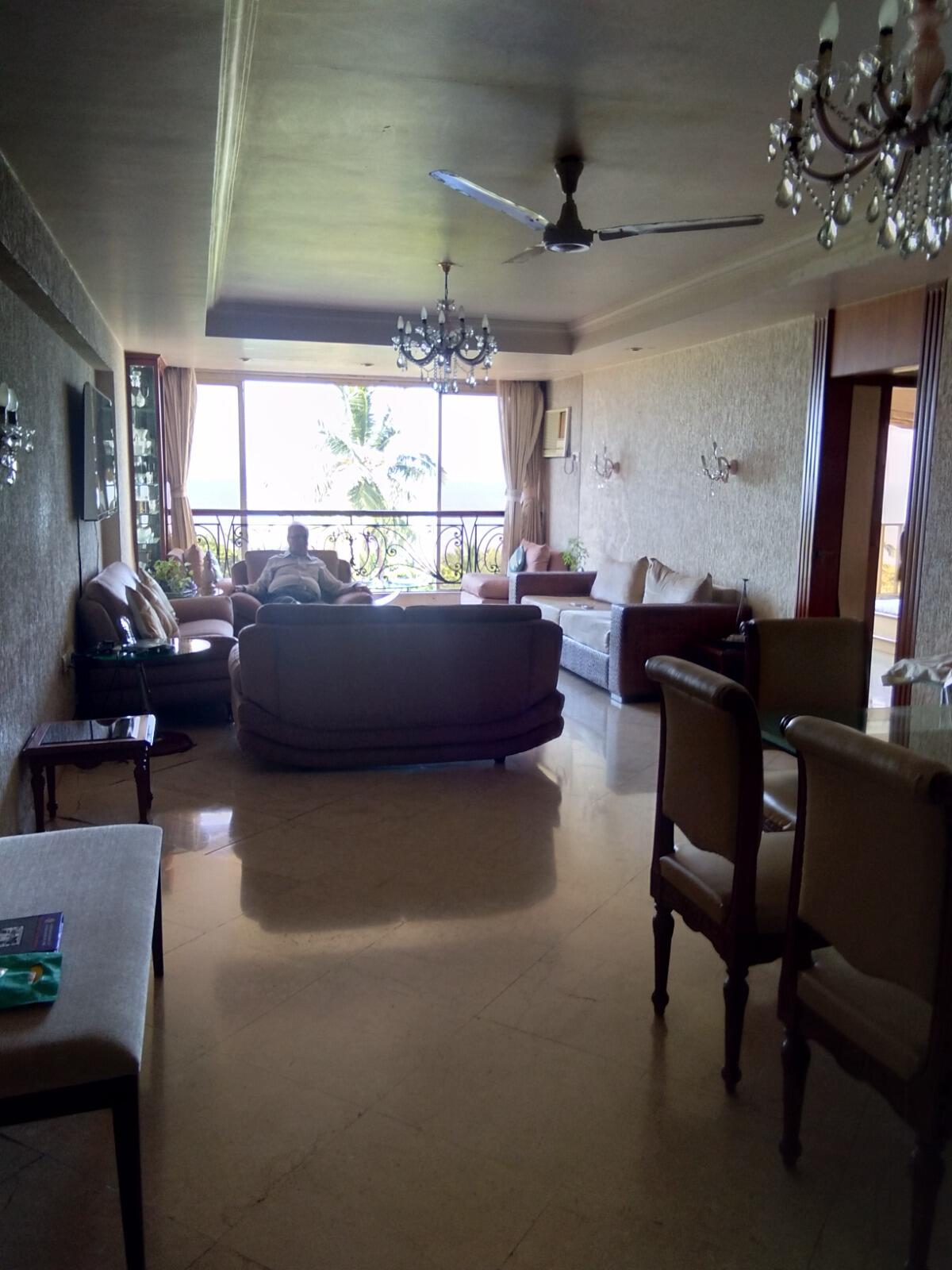 This furnished 3-bedroom, 3-bathroom Flats in Malabar Hill offers a serene sea view from its 4th-floor vantage point within the Tenerife Flats building.