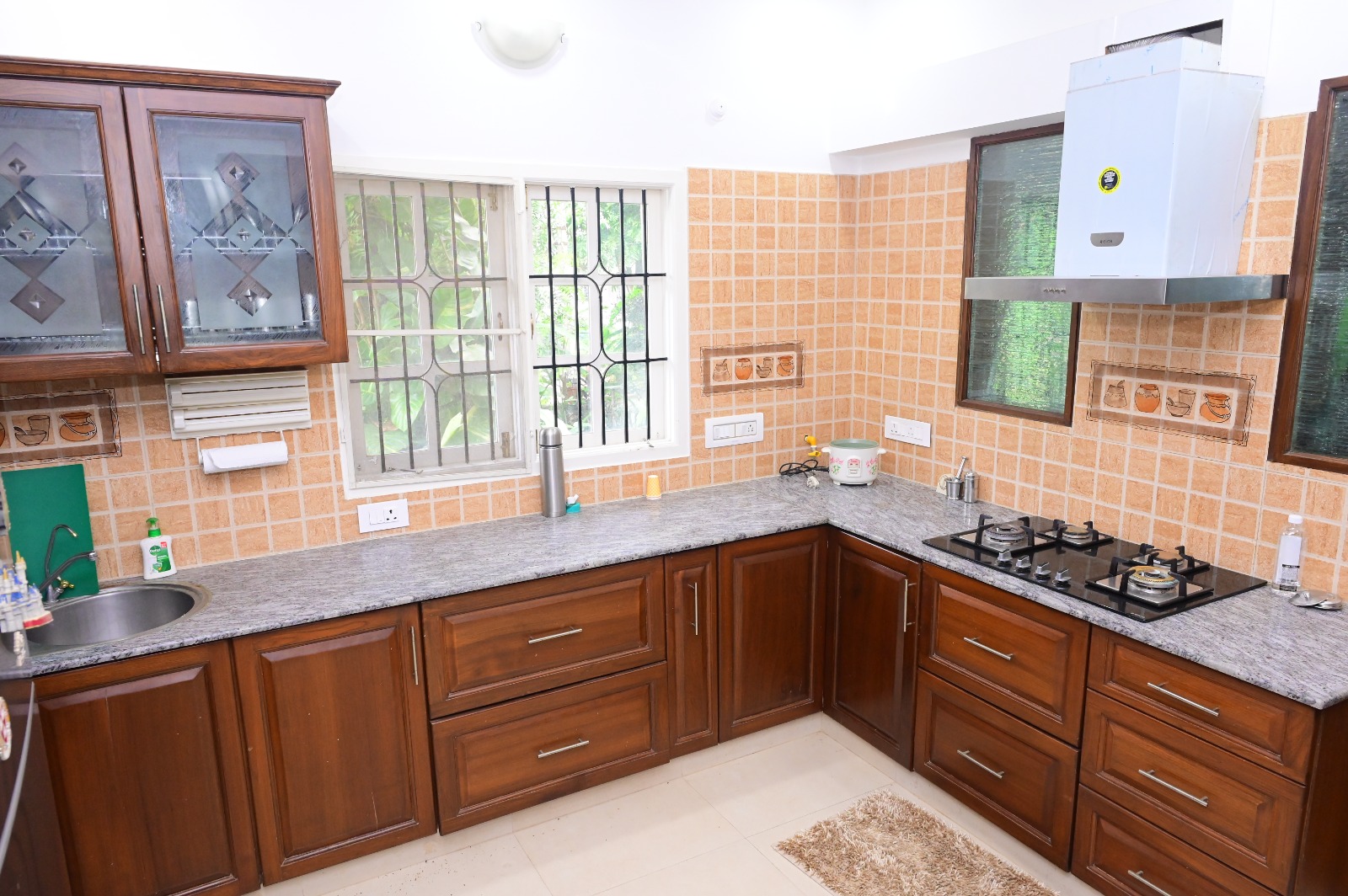 • This semi-furnished independent house offers 1300 square feet of living space with 2 bedrooms and 2 bathrooms, ensuring ample room for everyone.