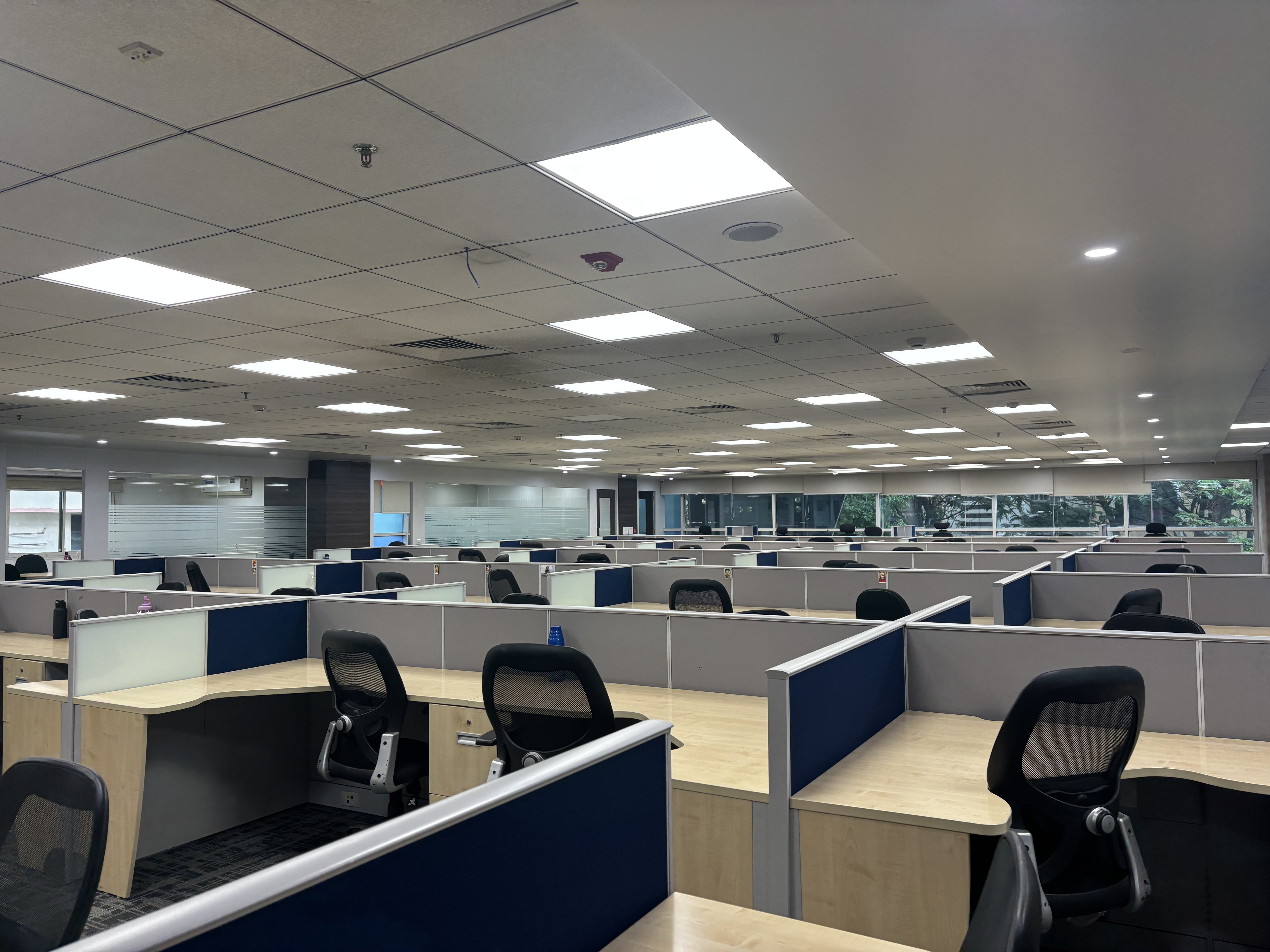 This furnished office space in Madhapur, Hyderabad, offers a productive work environment with a clear Road View from its fifth-floor position.