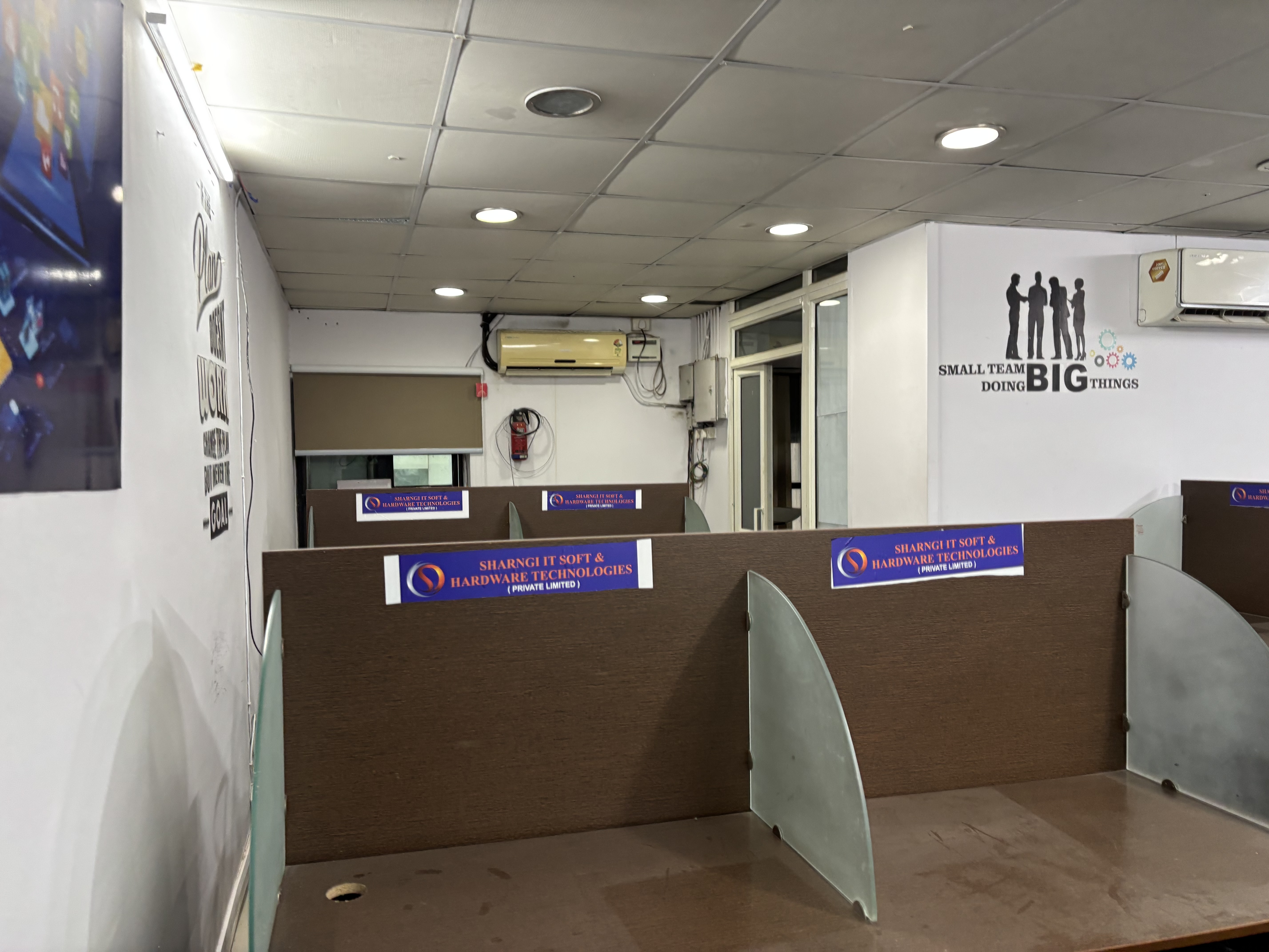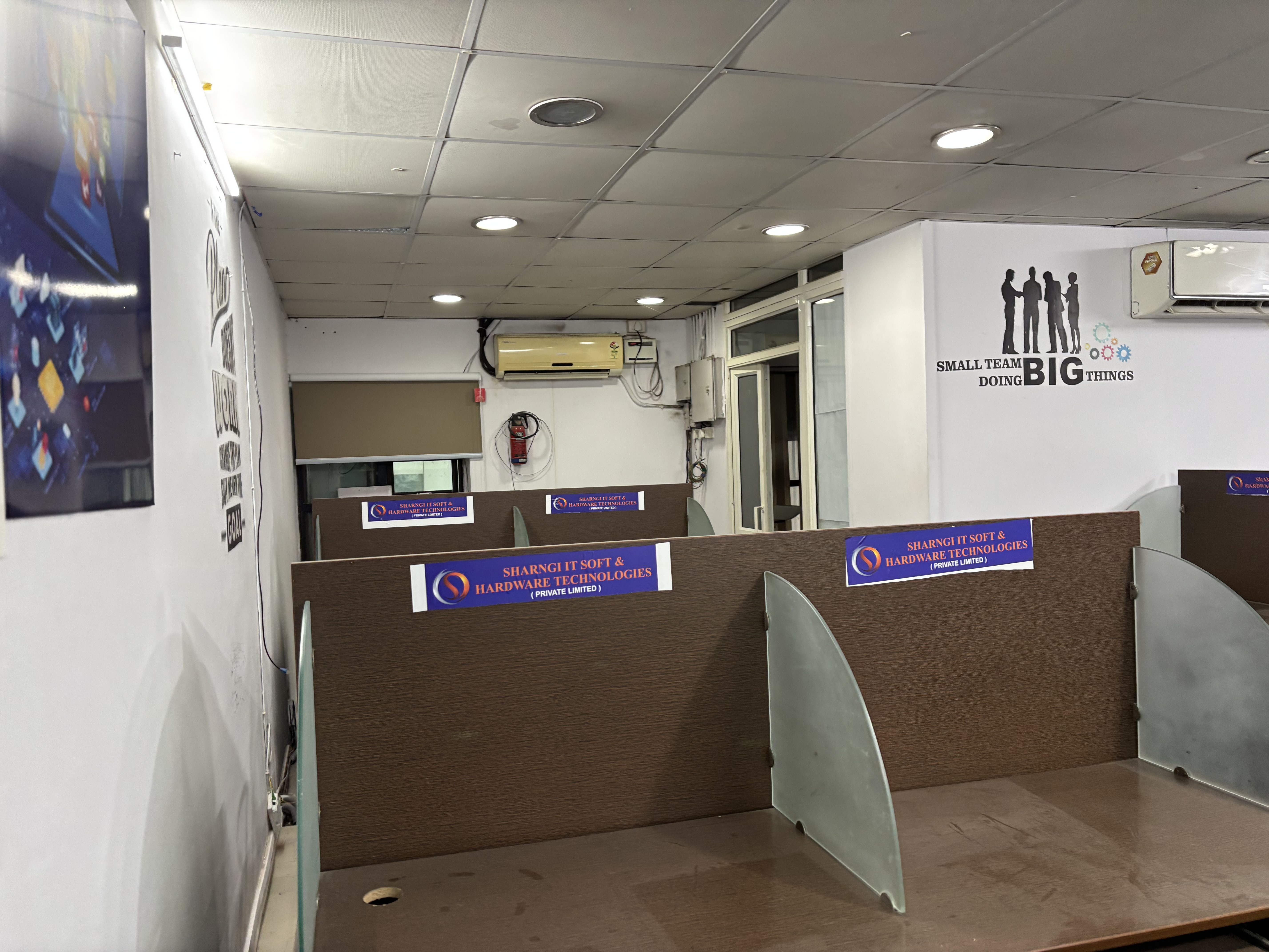 This 1500 Square Feet furnished office space in Madhapur, Hyderabad, offers a direct road view from the first floor, ensuring high visibility for your business operations.