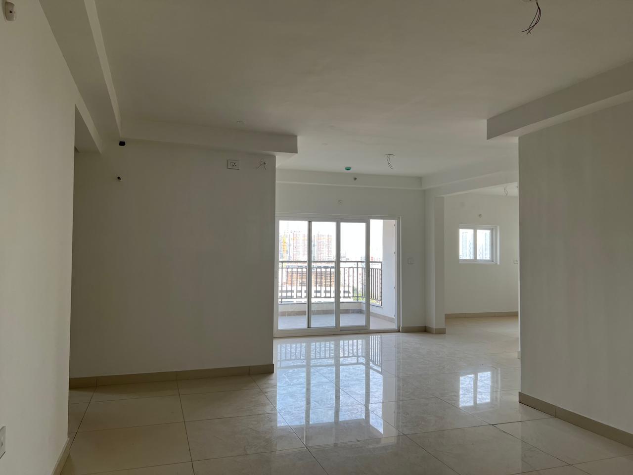 This unfurnished 3-bedroom, 3-bathroom Flats in ASBL Spire, Kokapet, Hyderabad, presents a garden view from its 12th-floor position within a 35-story building.