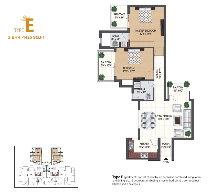 This 2 bedroom, 2 bathroom Flats in Gurgaon`s Sector 85 offers a modern lifestyle with extensive amenities for sale.