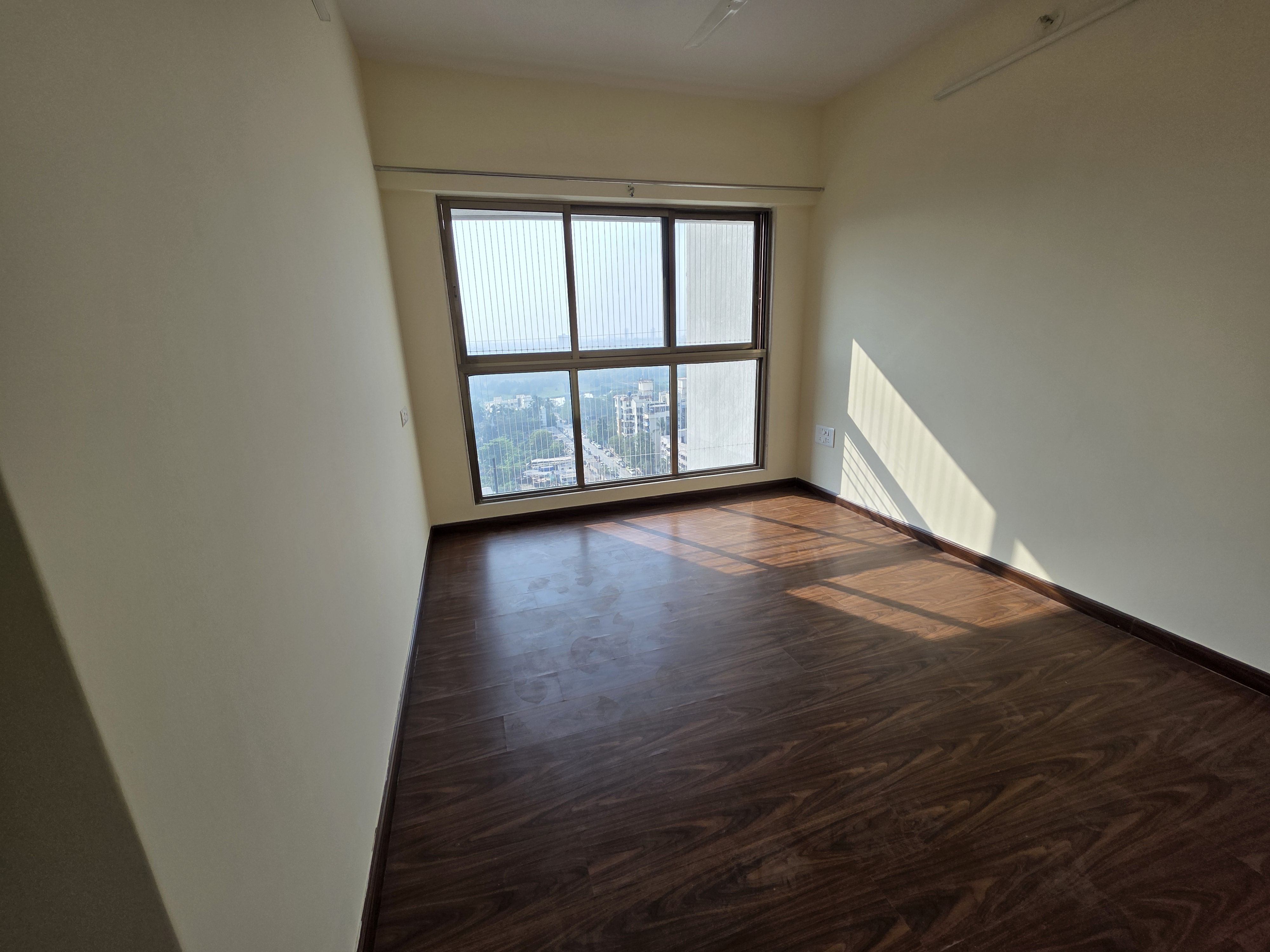 • Situated on the 27th floor of the 37-story Goregaon West View CHS, this 750 square feet home offers a park view and the convenience of adjoining