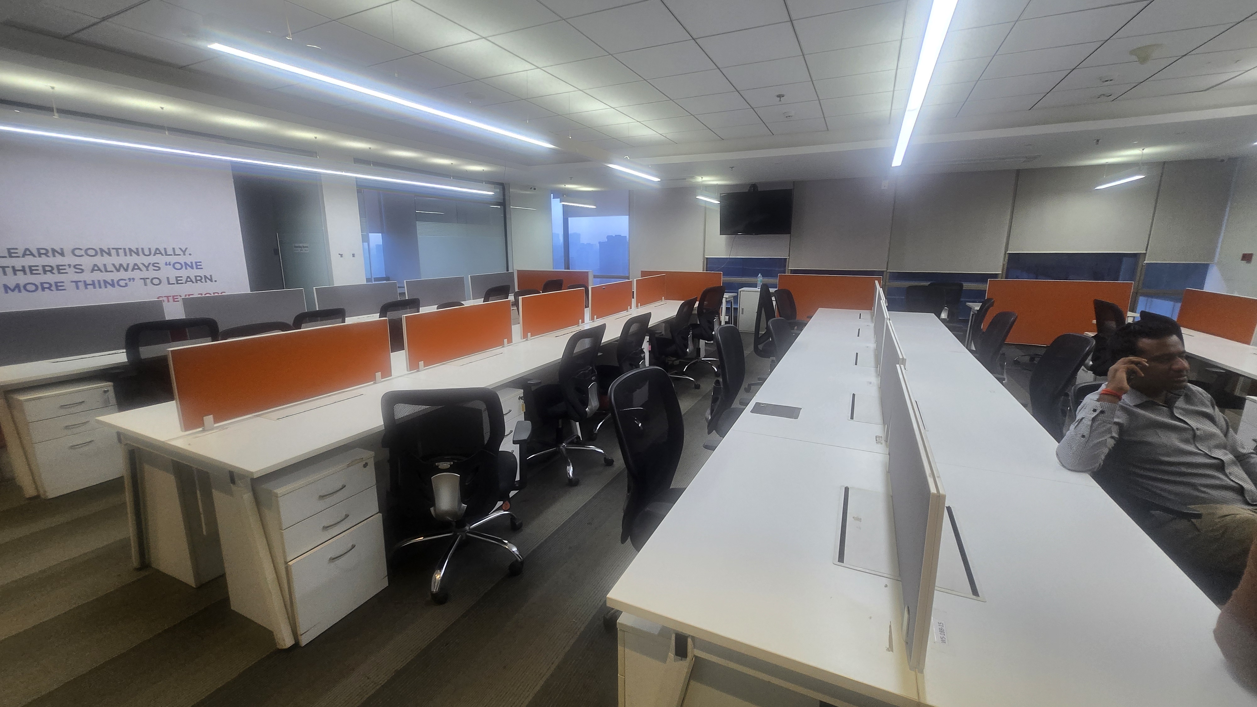 This 815 square feet furnished office space in Goregaon East, Mumbai, offers a prime location with a clear road view from the fifth floor, ideal for businesses seeking accessibility and visibility.