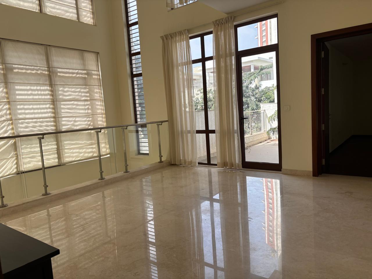 Experience unparalleled luxury in this 4-bedroom, 5-bathroom semi-furnished penthouse available for rent in Bangalore`s Whitefield, spanning an impressive 5920 square feet with a tranquil garden view.