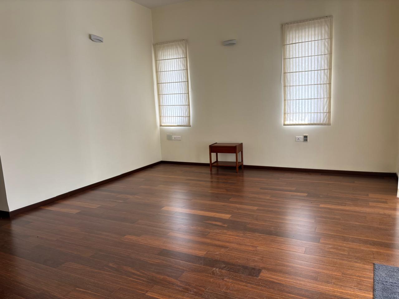 Experience luxury living in this spacious 4033 square feet villa for rent in Prestige Lakeside Habitat, Varthur, Bangalore, offering a serene garden view and abundant amenities for an active lifestyle.