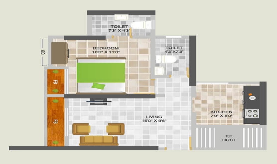 • 399 Sq.Ft. Carpet Area