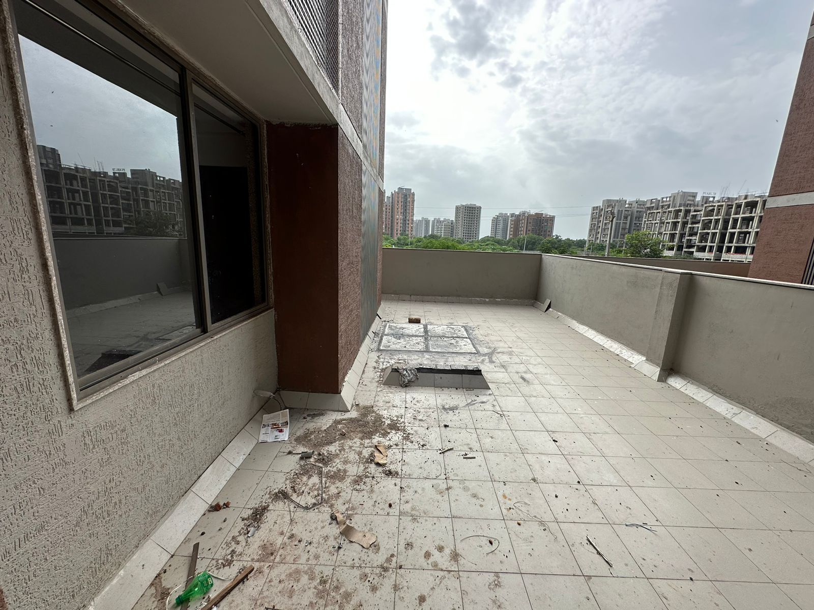 This semi-furnished 4-bedroom Flats in Goyal Olive Greens, Gota, Ahmedabad, is ideal for families seeking comfort and convenience with a road view from its balcony.