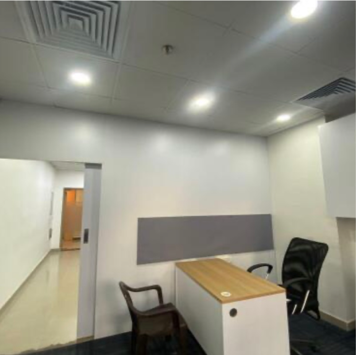 This semi-furnished 705 square feet office space in Ramgarh Dhani, Gurgaon, presents a practical and accessible business environment with its direct road view.