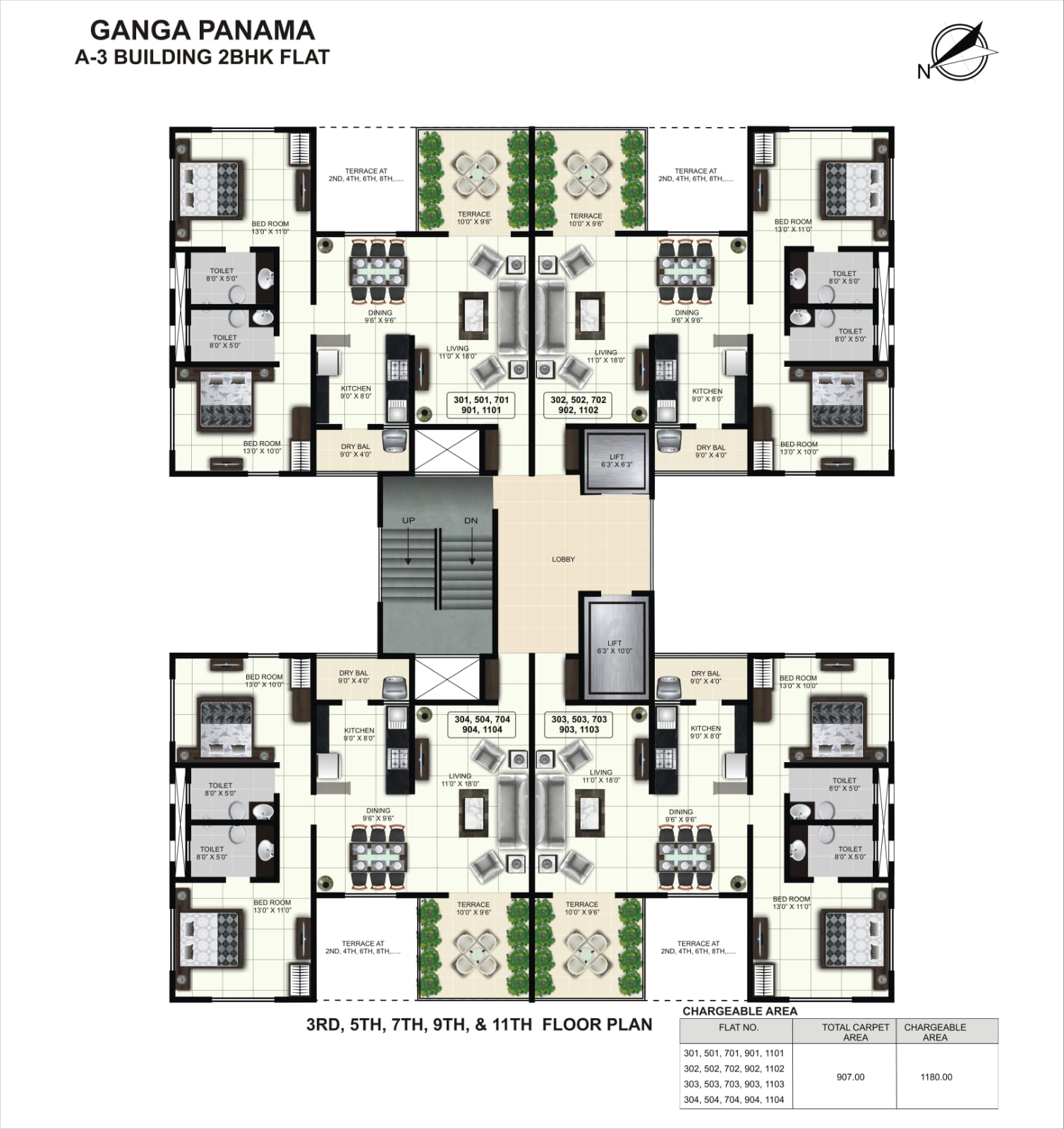 • 1180 Sq.Ft. Saleable Area